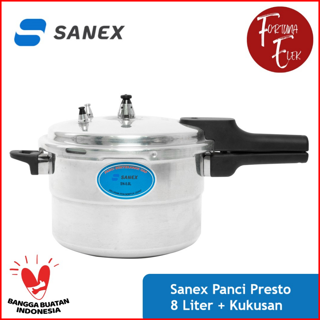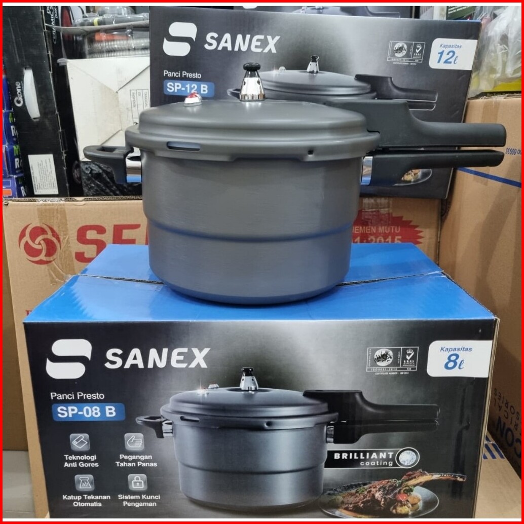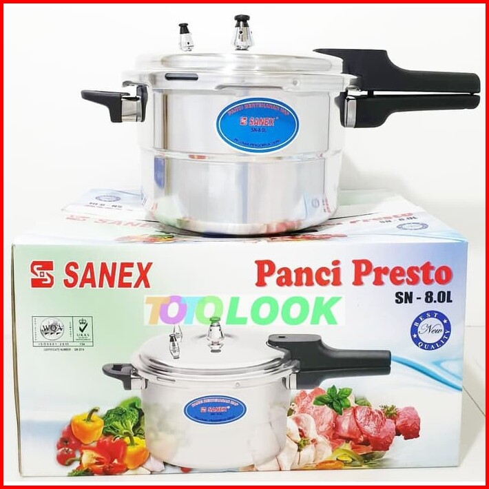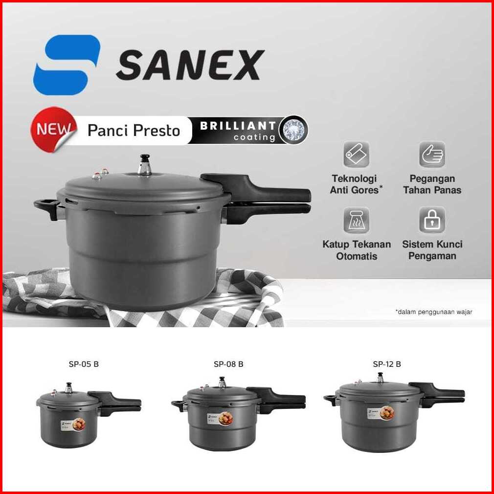 Sanex Panci Presto 8 Liter Sn-8.0l Kukusan Bahan Titanium Alloy Warna Hitam Brilliant Coating Anti Gores Dan Karat