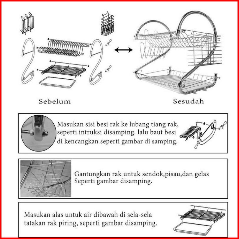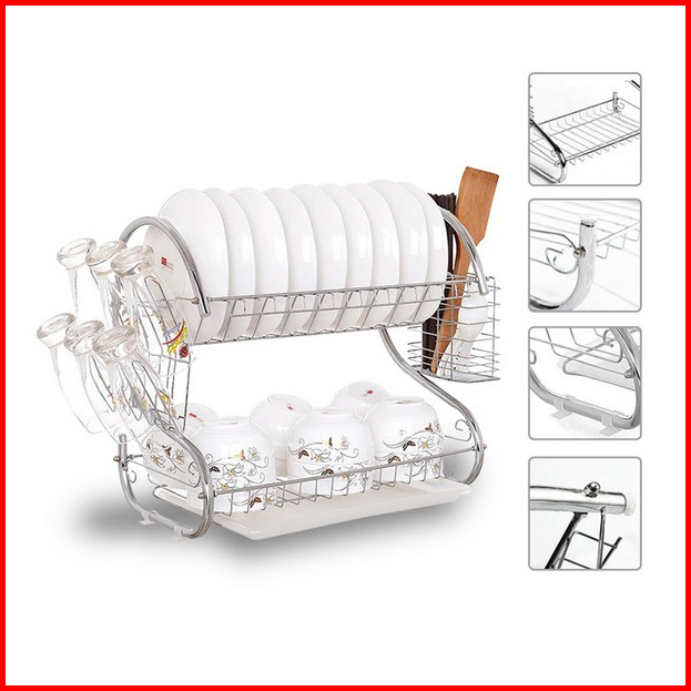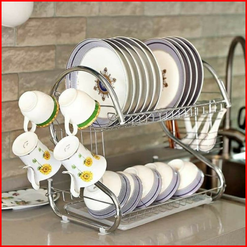 Rak Piring 2 Susun Stainless Steel Rak Dapur Anti Karat