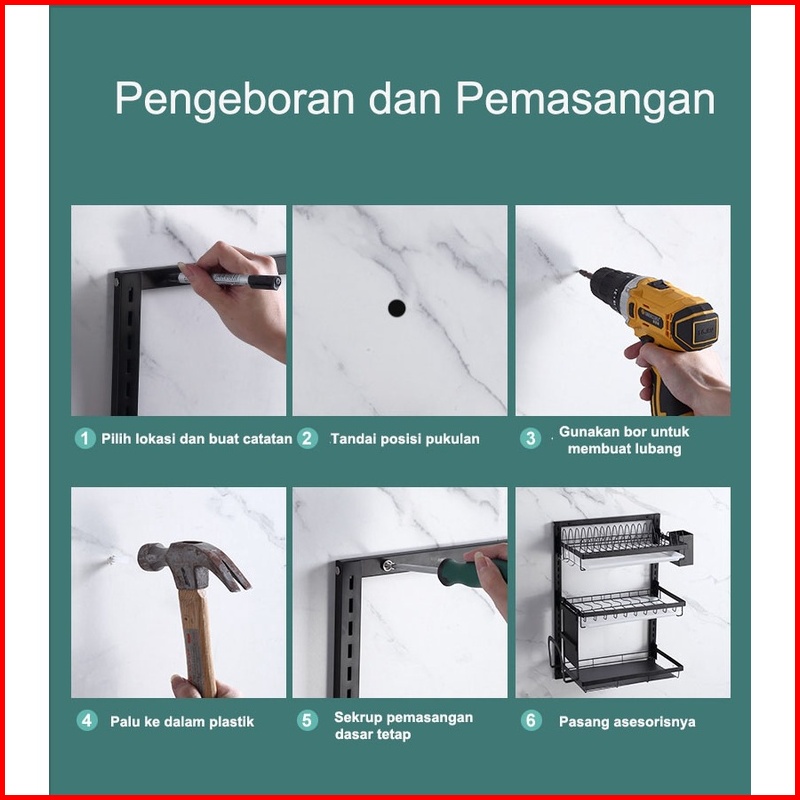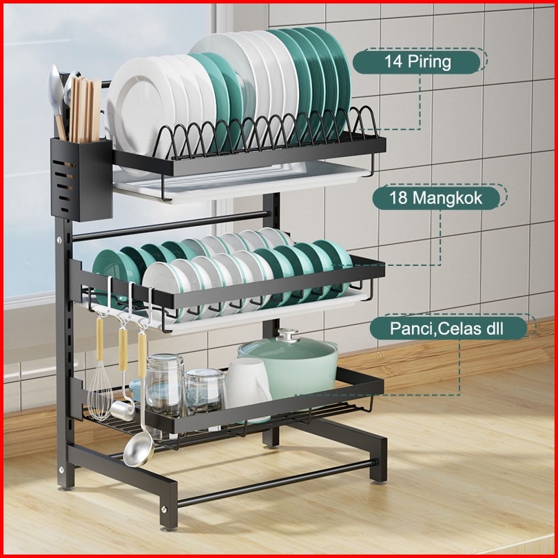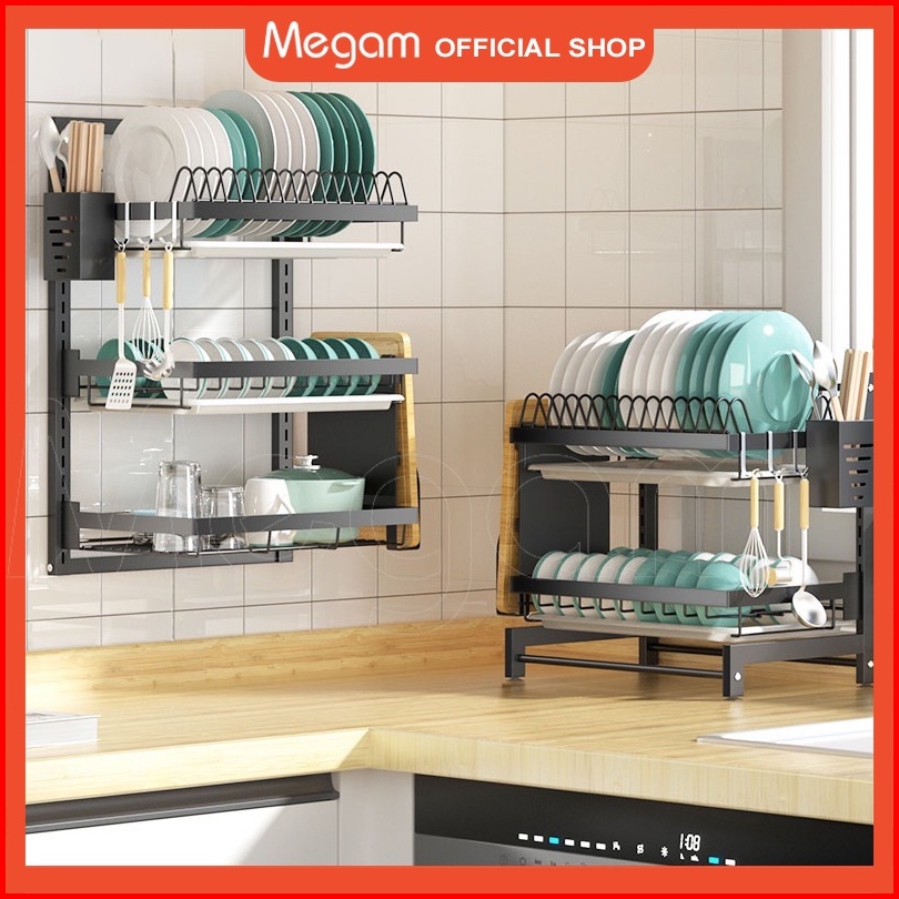 Megam Rak Piring Susun Rak Dapur Dinding Serbaguna Tempat Sendok Gelas Stainless Steel Rak Piring Gantung Hrm112