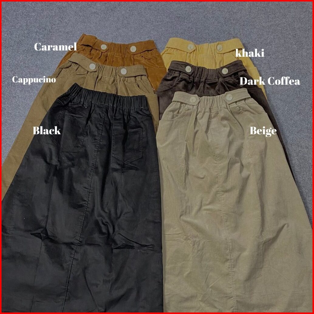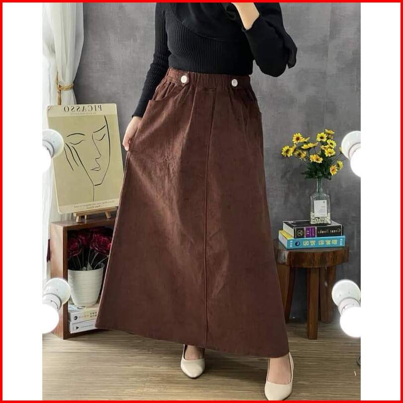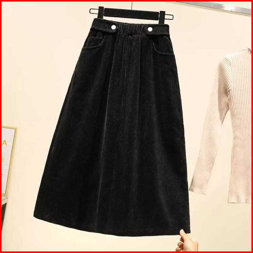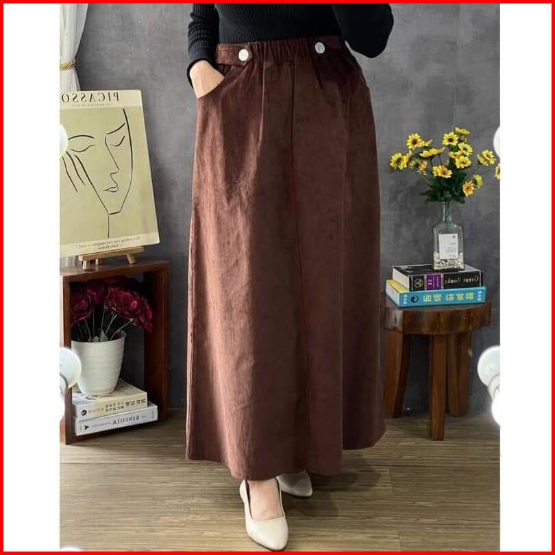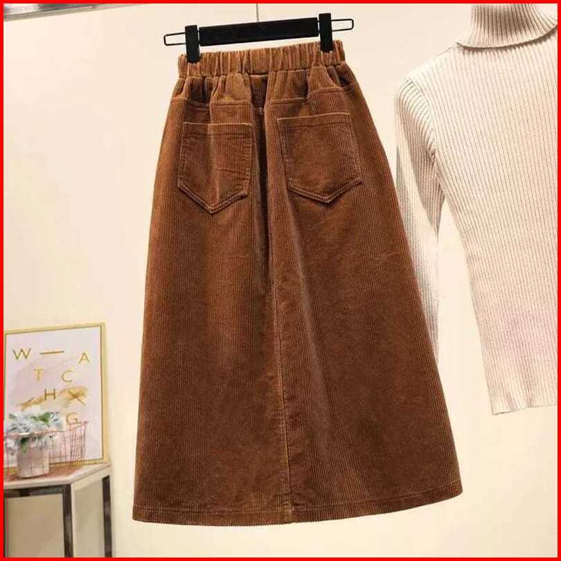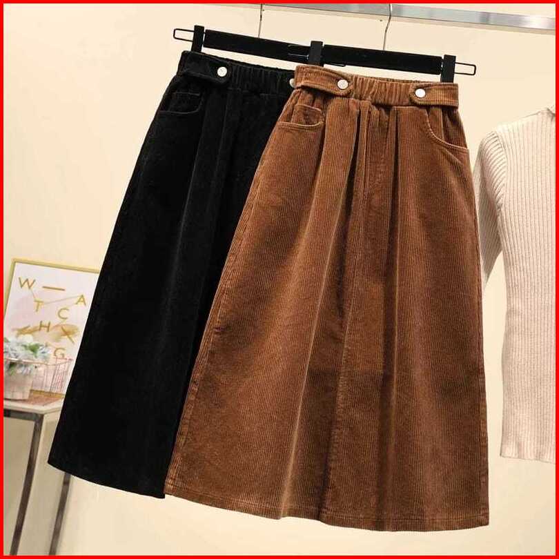 Rok Vintage Corduroy Skirt Korean Style Rok Span Wanita Kekinian Ukuran Standart - Jumbo