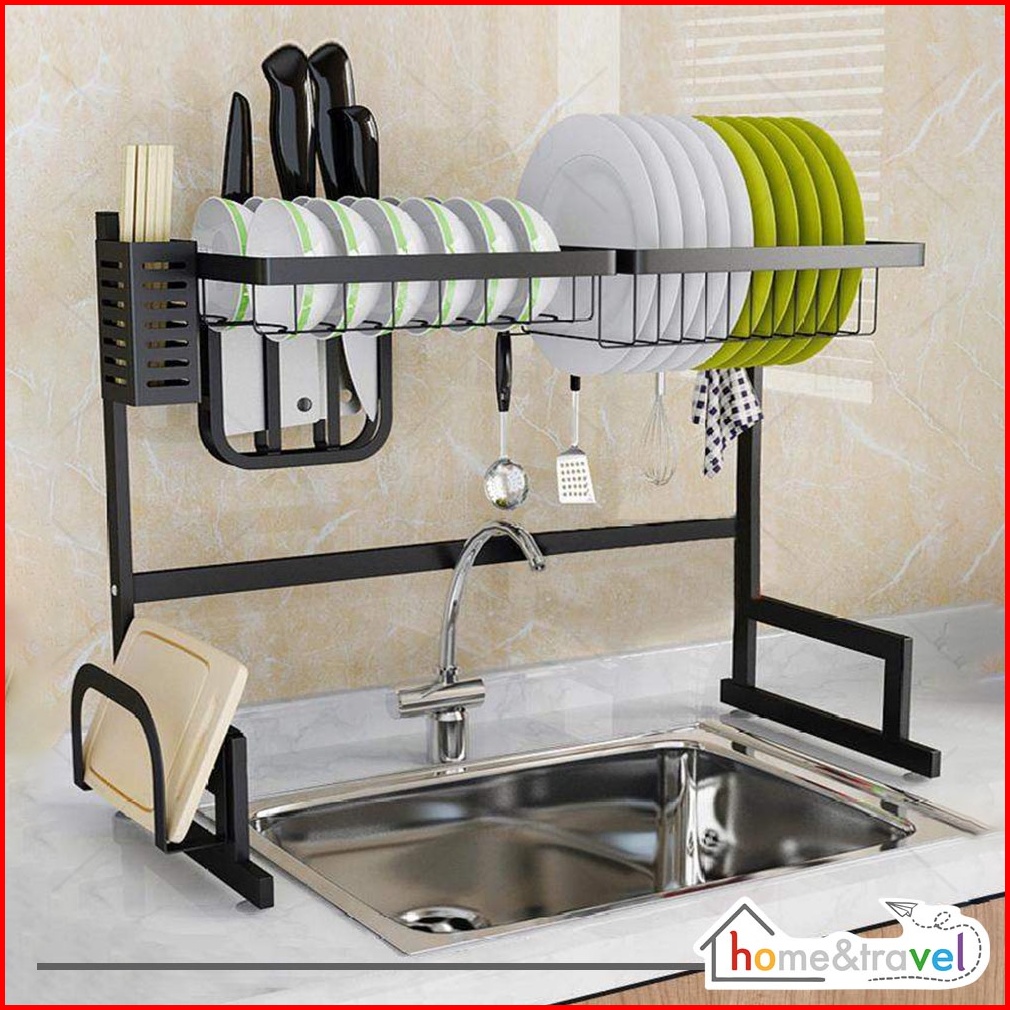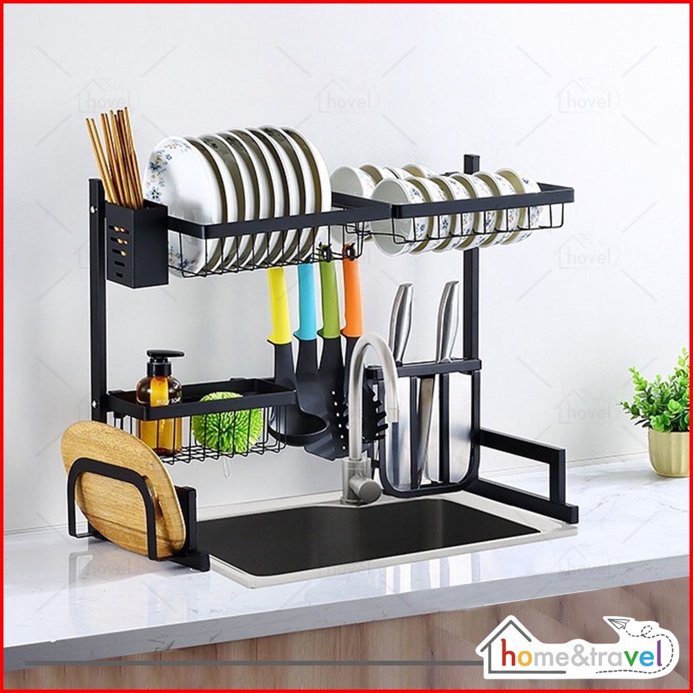 Hovelshop Rak Piring Dapur Wastafel Stainless Hitam Anti Karat Kuat 2 Susun 65 Cm