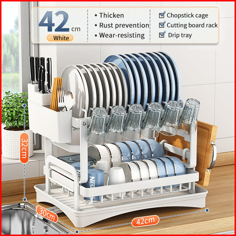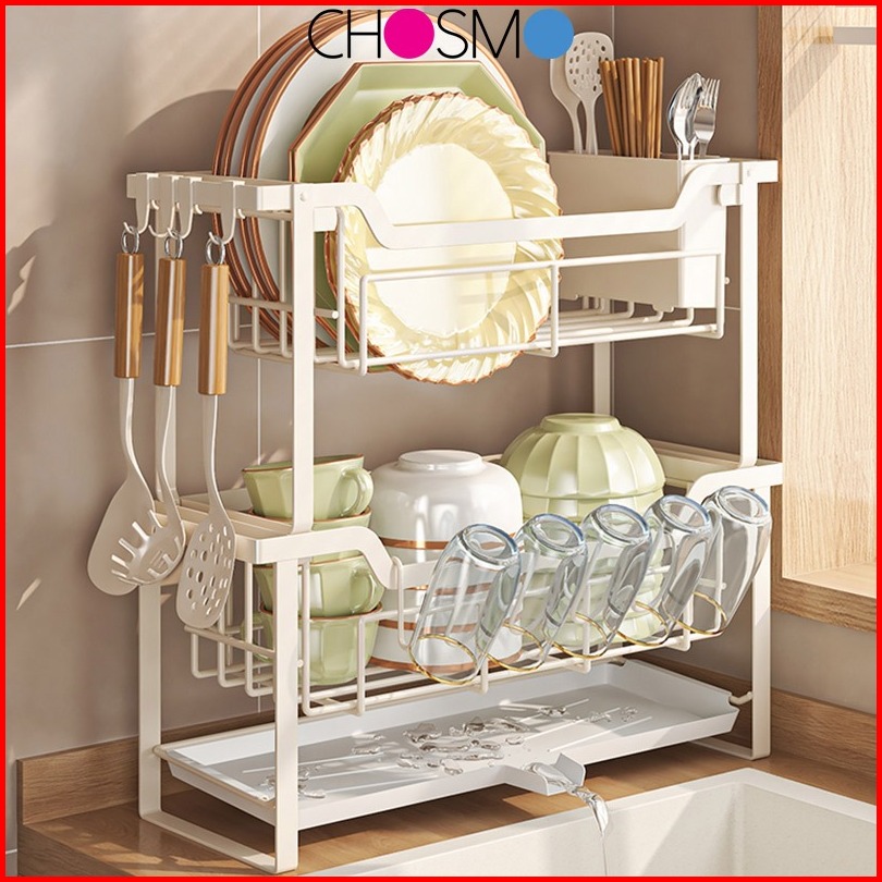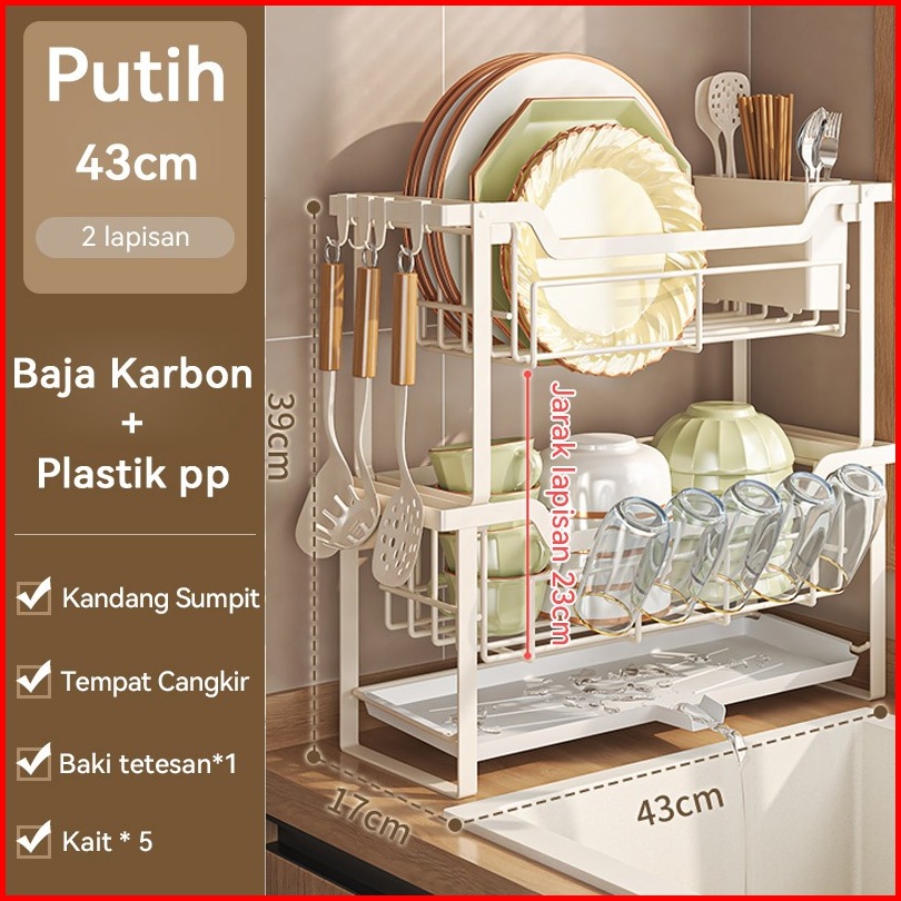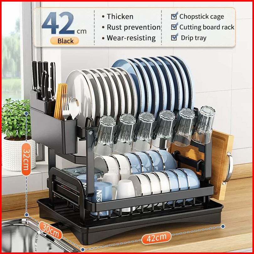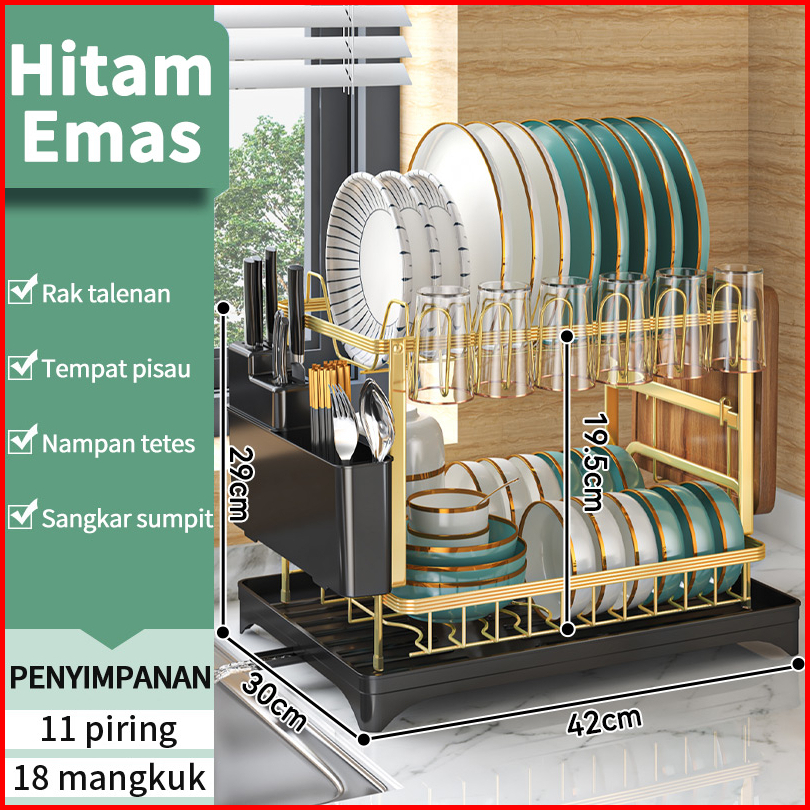 Rak Penyimpanan Stainless Steel Penyelenggara Dapur Baki Peniris Otomatis Sinki Rak Pinggan Mangkuk Rak Dapur