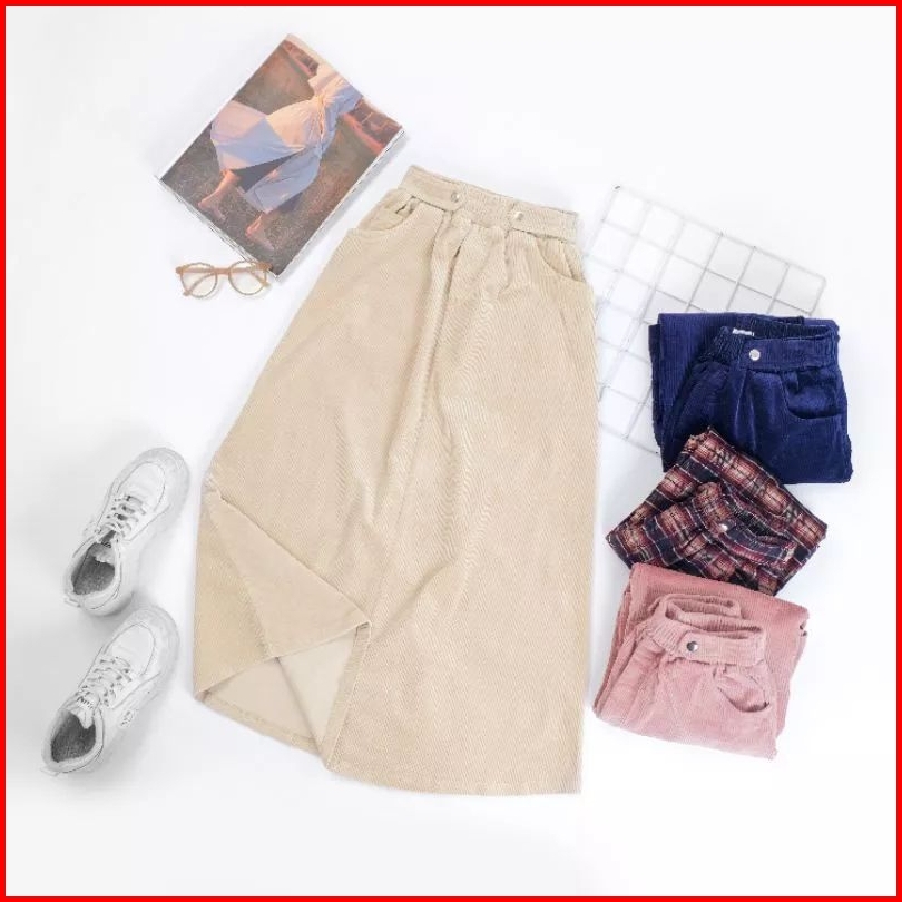 Rok Corduroy Vintage Skirt Wanita Rok Corduroy Korean Style Terbaru
