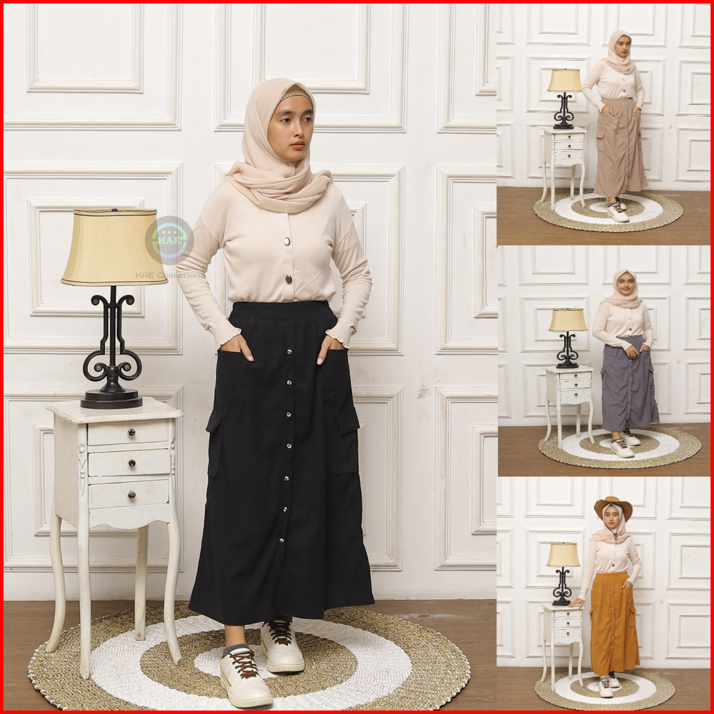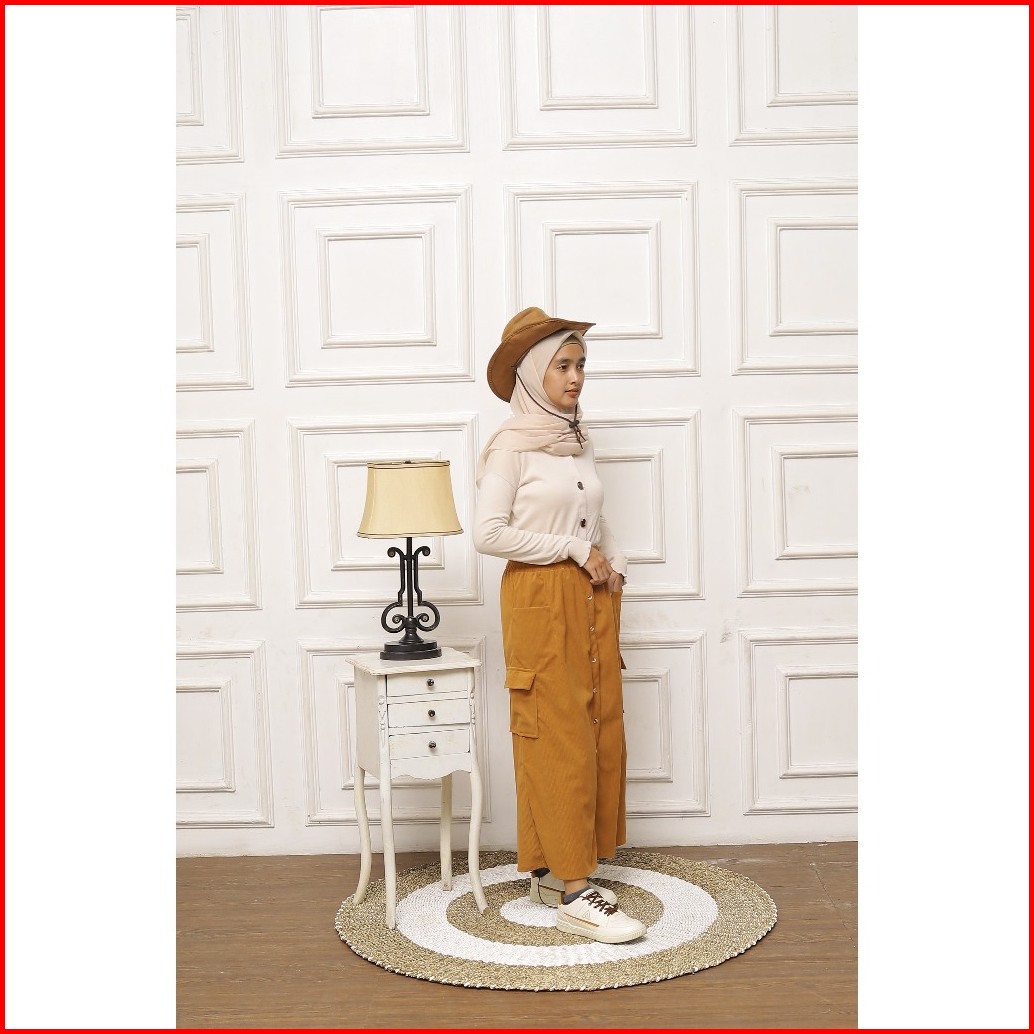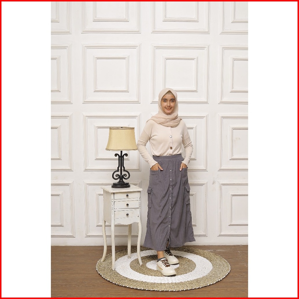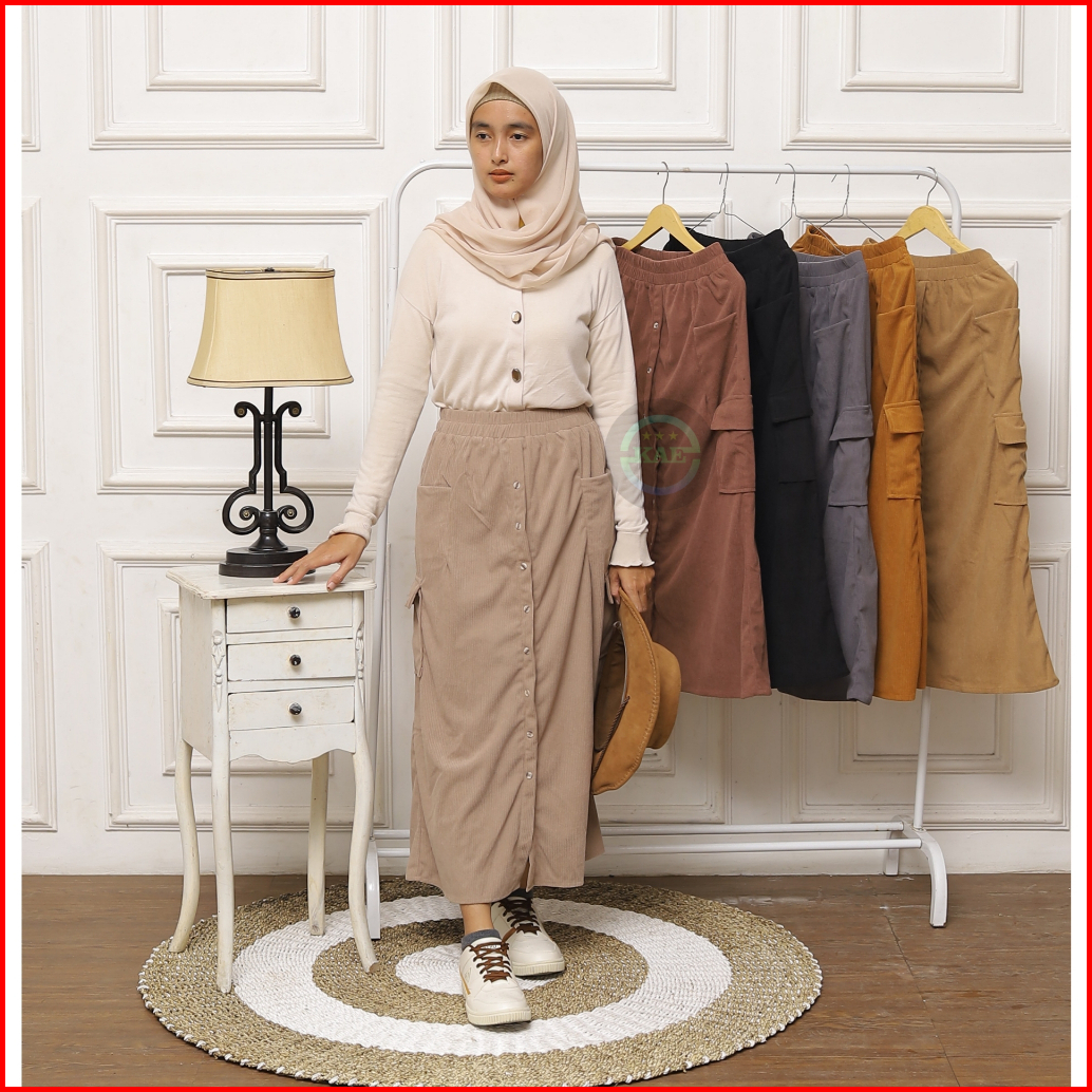 Cargo Skirt Corduray Rok Cargo Wanita Panjang Cargo Skirt Span Belah Tengah Corduray Premium