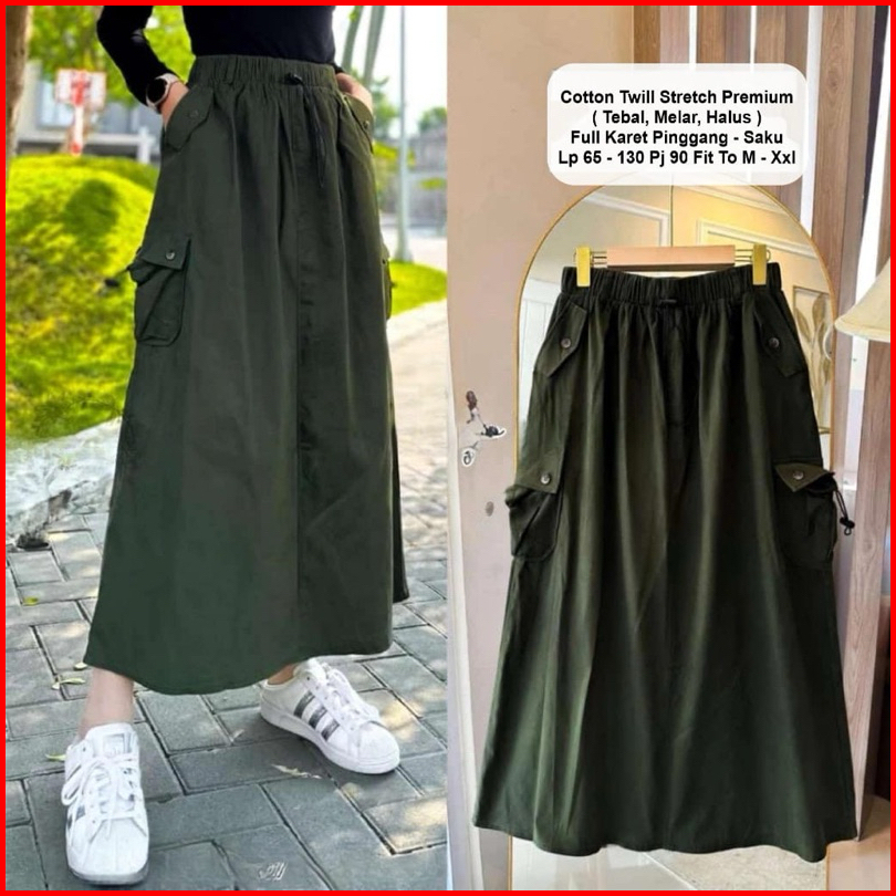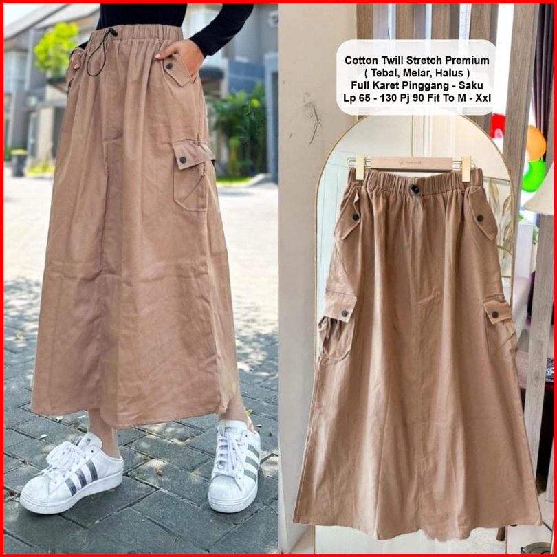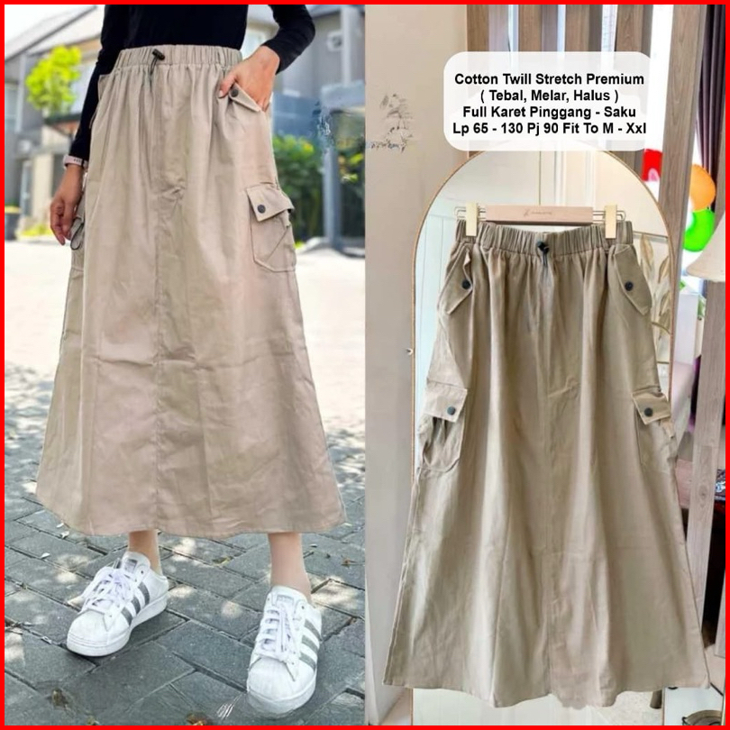 Rok Cargo Serut Rok Cargo Skirt Korean Style Rok Cargo Poket Panjang Rok Cargo A Line