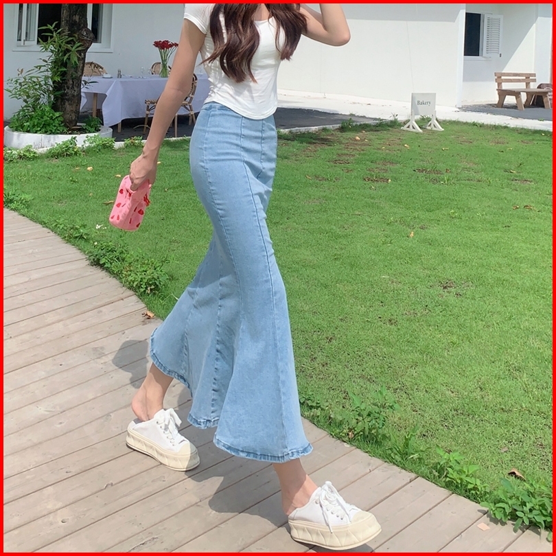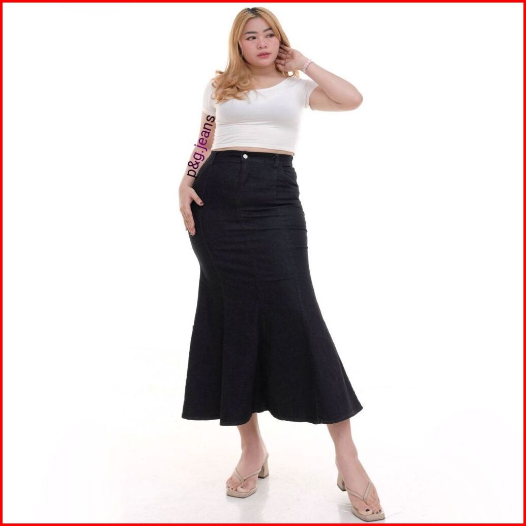 Ningyo Rok Mermaid Denim Jeans Strecth Black Blue Garment Jumbo Highwaist Skirt Duyung