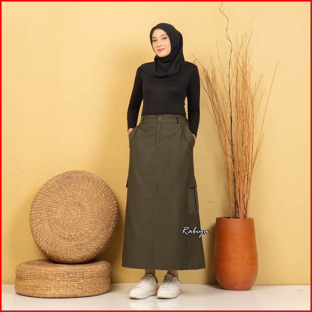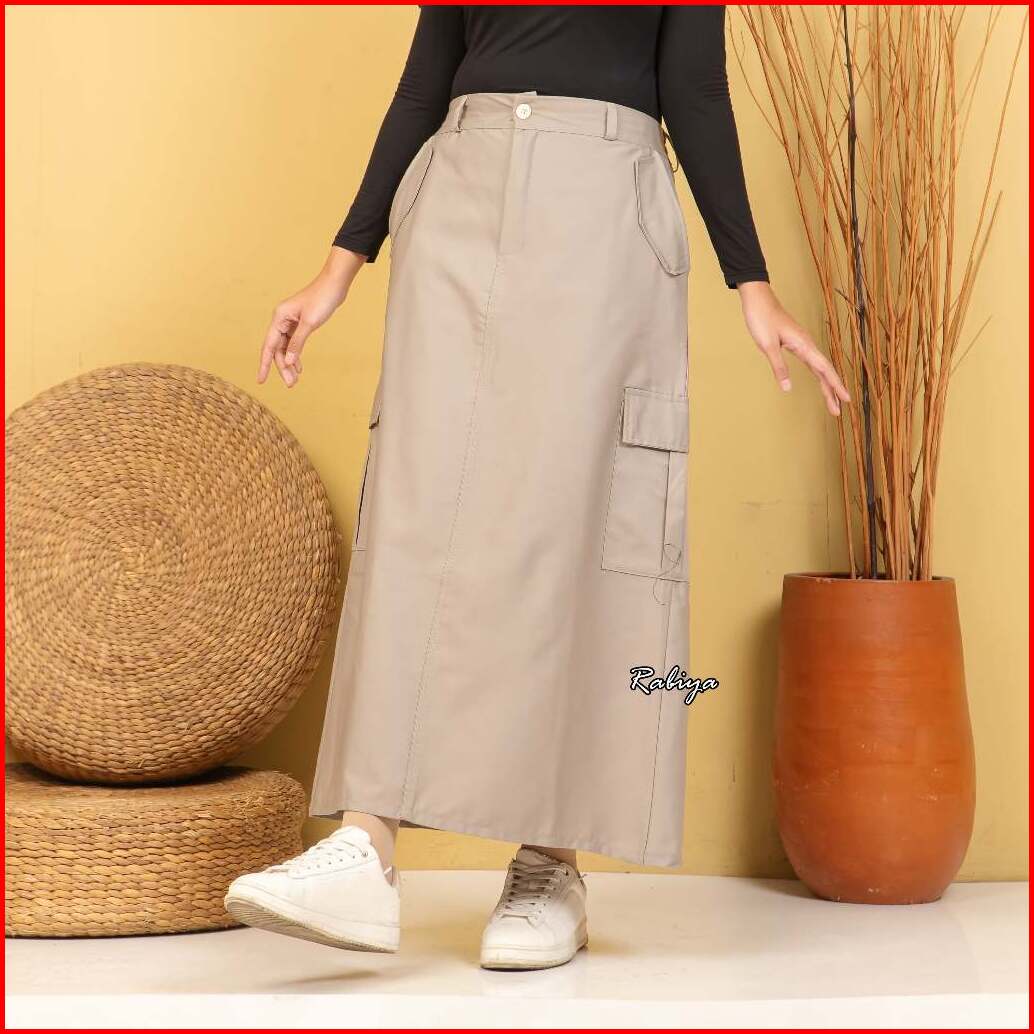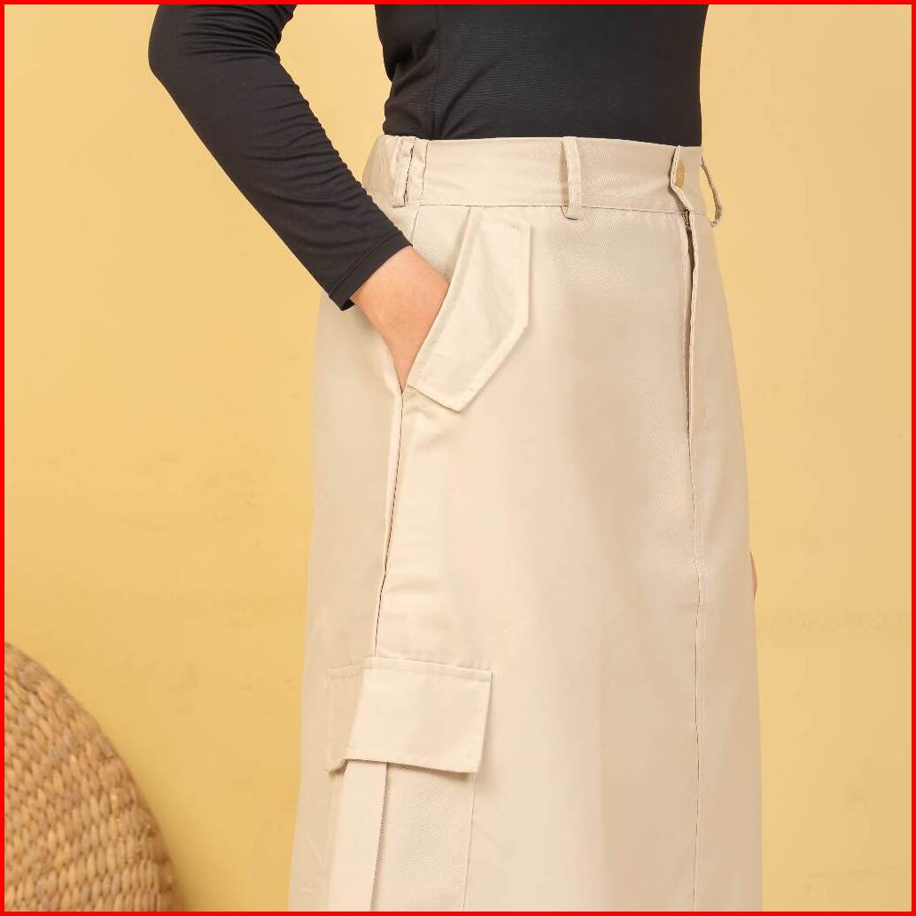 Long Skirt Cargo Bahan Japan Drill Rok Kargo Katun Wanita Panjang Fit 80 Kg