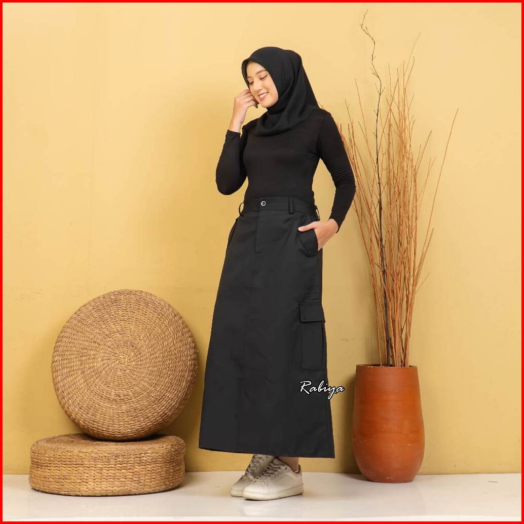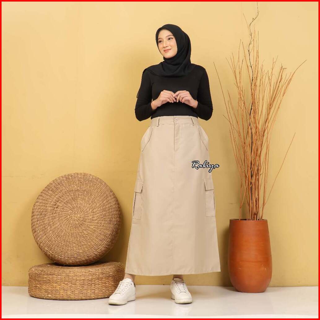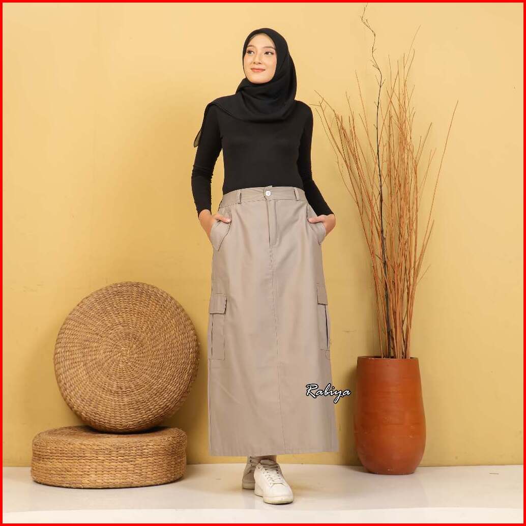 Long Skirt Cargo Bahan Japan Drill Rok Kargo Katun Wanita Panjang Fit 80 Kg