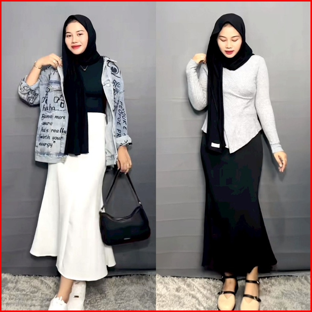 Lunar Mermaid Skirt Mermaid Skirt Rok Flare Wanita Rok Mermaid Basic Polos - Mermaid Maxi Skirt Rok Panjang Wanita