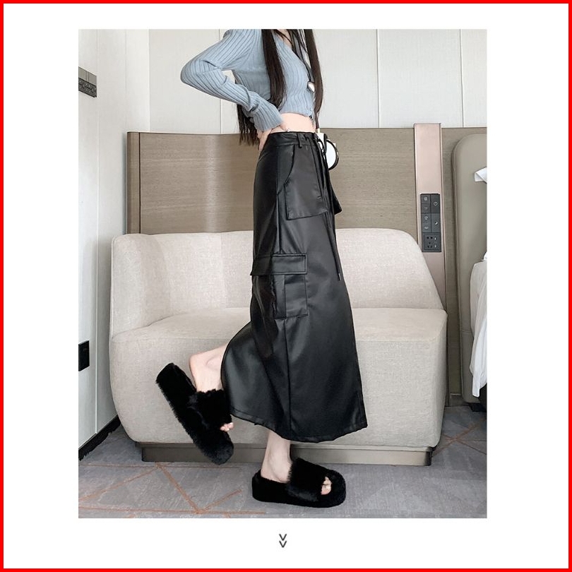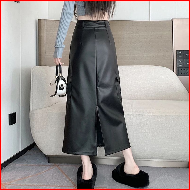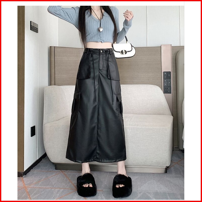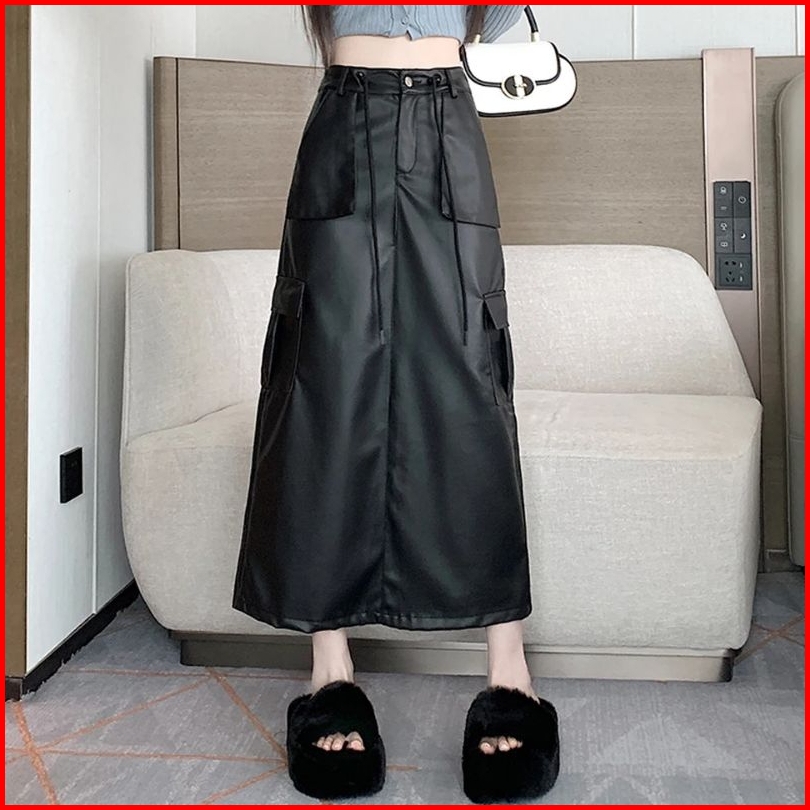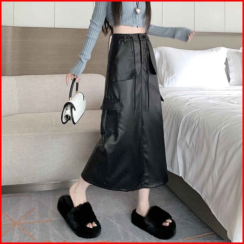 Rok Cargo Kulit Pu Wanita Sle Gyaru Semi Kulit Vienna