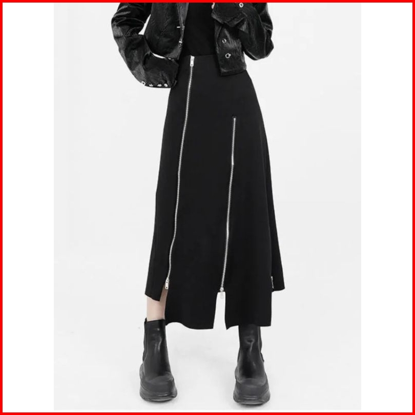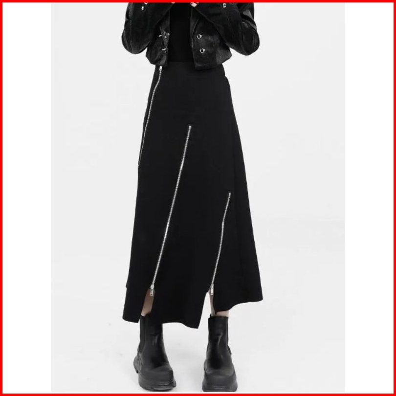 Rok Kulit Wanita Variasi Resleting Gaya Vintage Rok Kulit Panjang Rok Kulit Rok Kulit Wanita