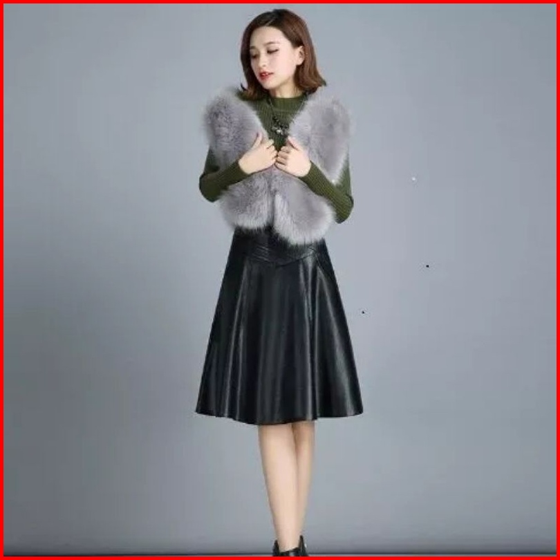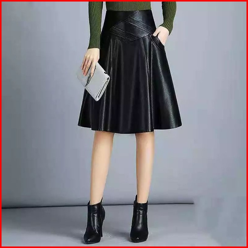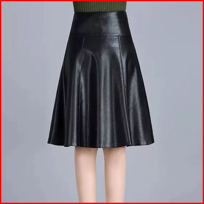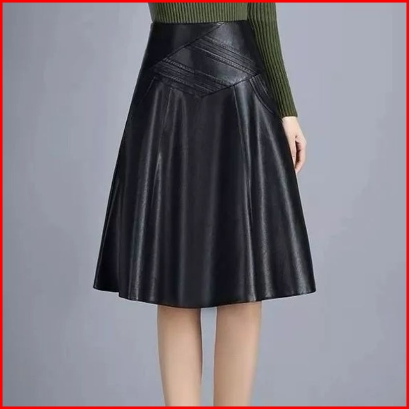 Rok Kulit Wanita Rok Wanita Mayung Bahan Kulit Sintetis Rok Kantor Elegan Kasual