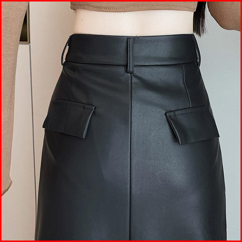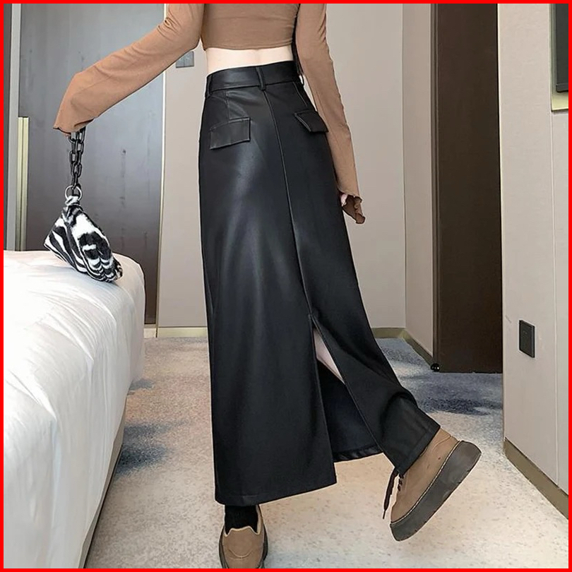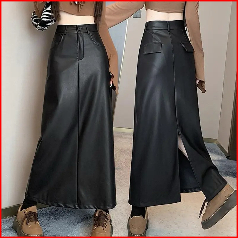 Riseleather.id - Rok Kulit Wanita Panjang Pinggang Tinggi Korea Type