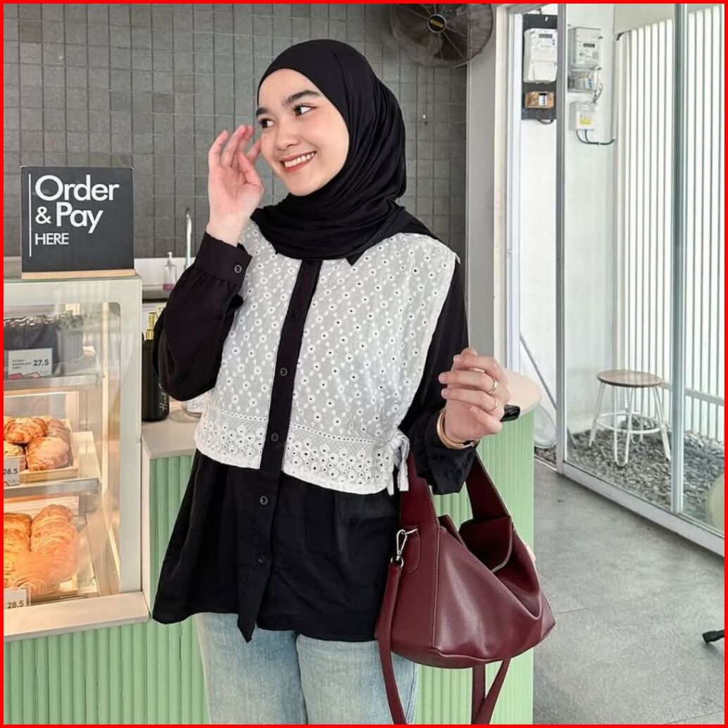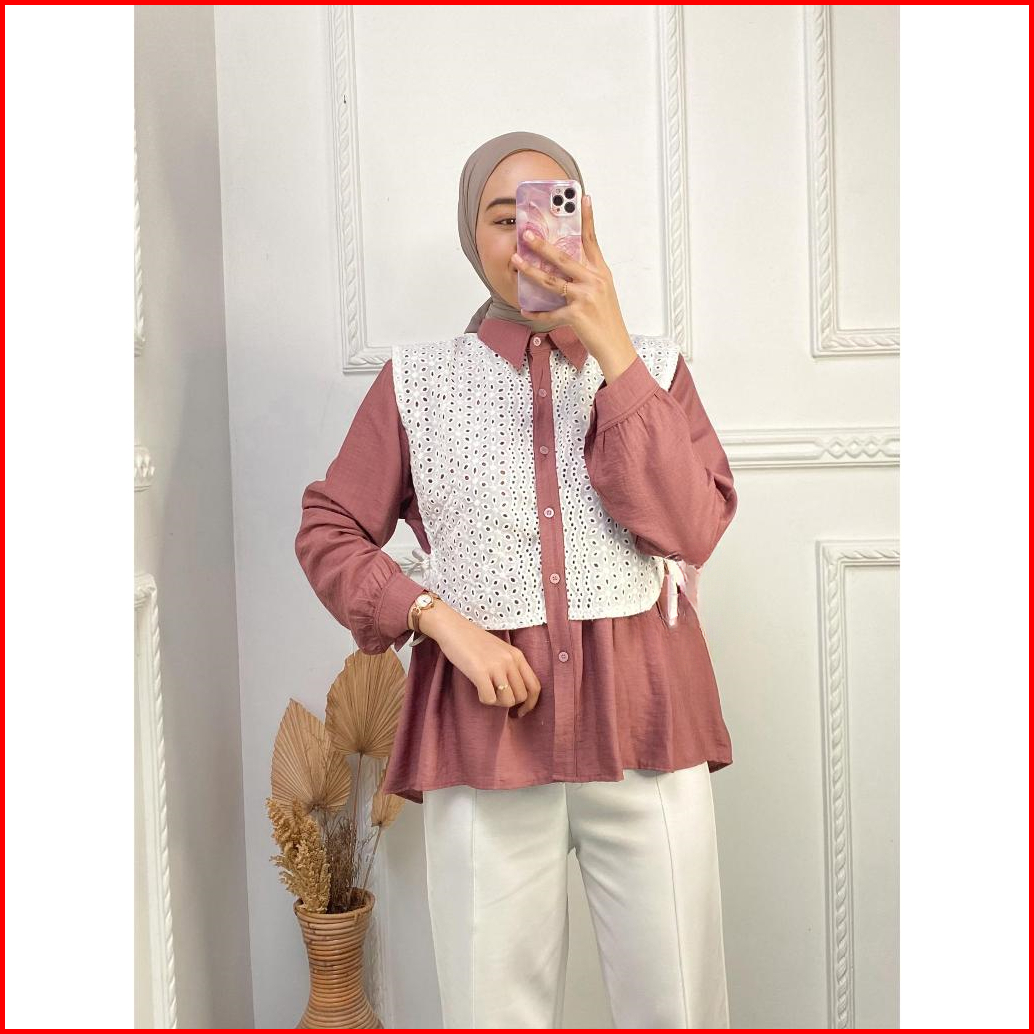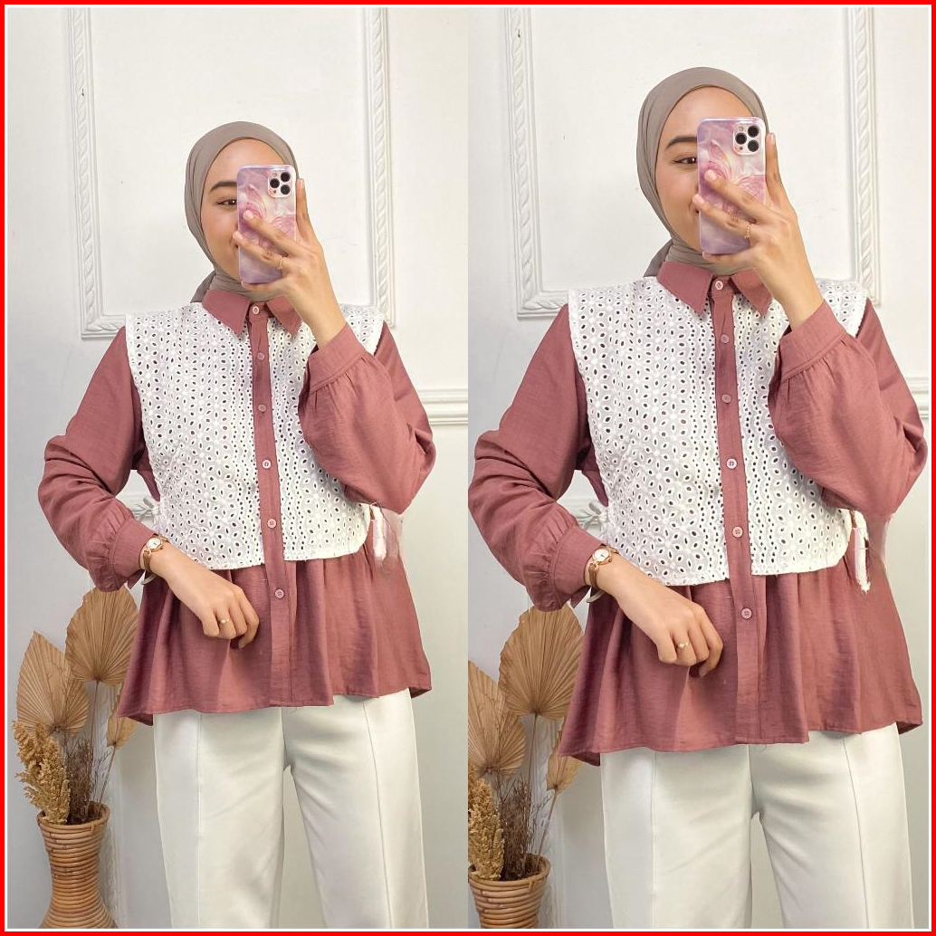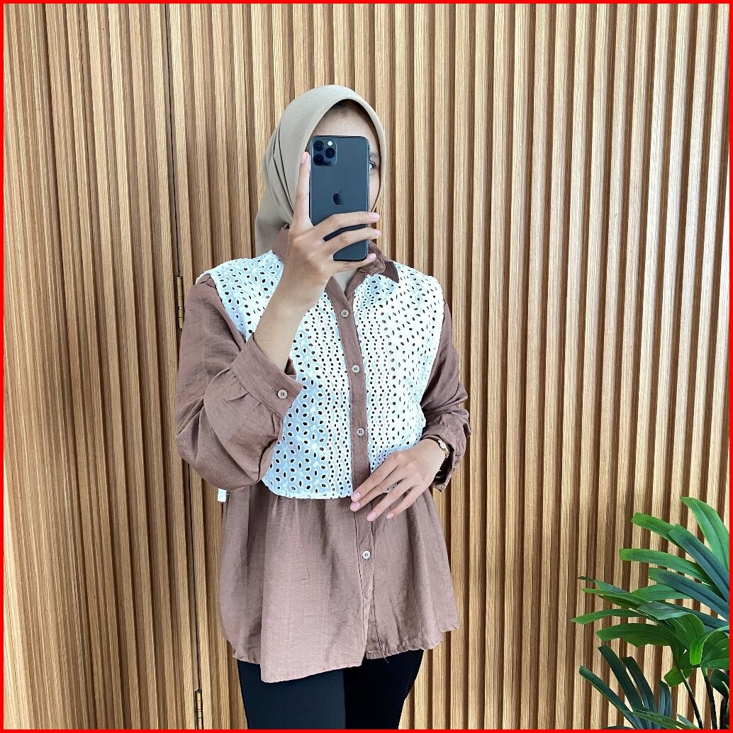 Kemeja Wanita Kekinian Lengan Panjang Pollo Linen Mix Katun Broklat Dena