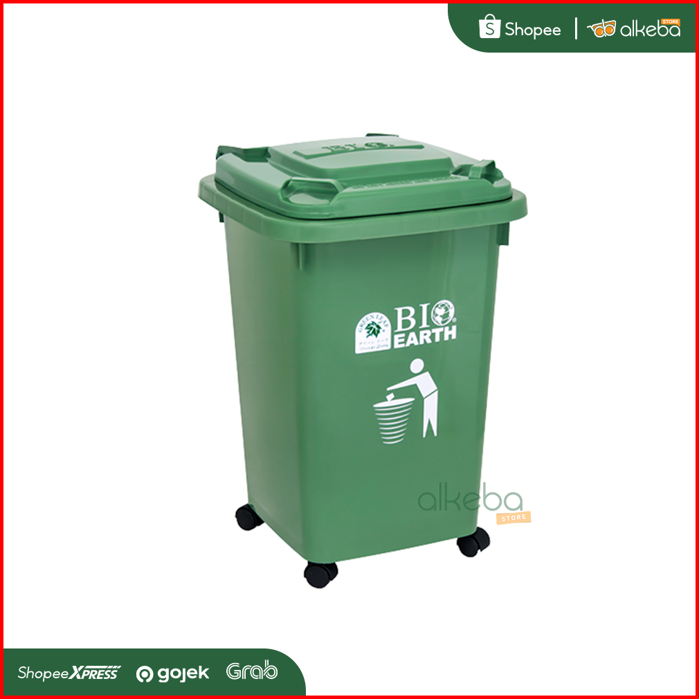 Tempat Sampah Bio Earth Green Leaf 2134 58 Liter Dengan Tutup Dan Roda