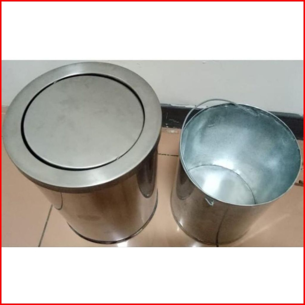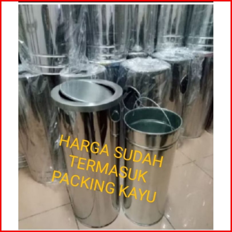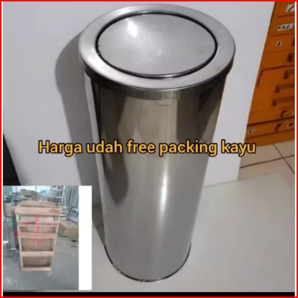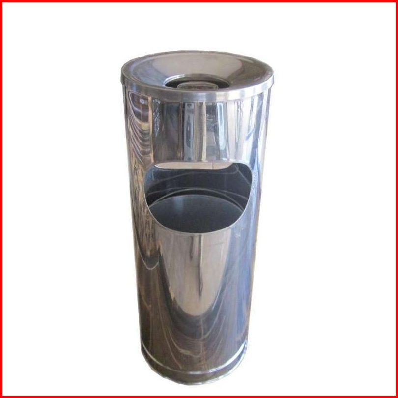 Tong Sampah Tabung Stainless Steel Tutup Goyang Dan Asbak Astray - Tong Sampah Tempat Sampah Tabung Stenliss