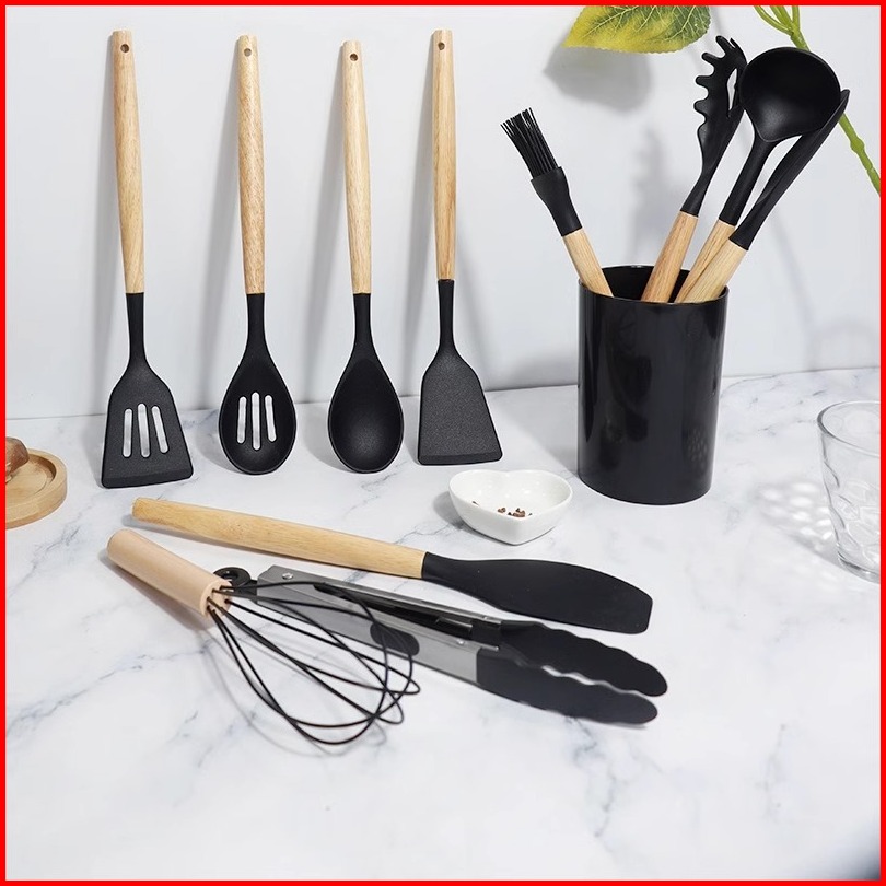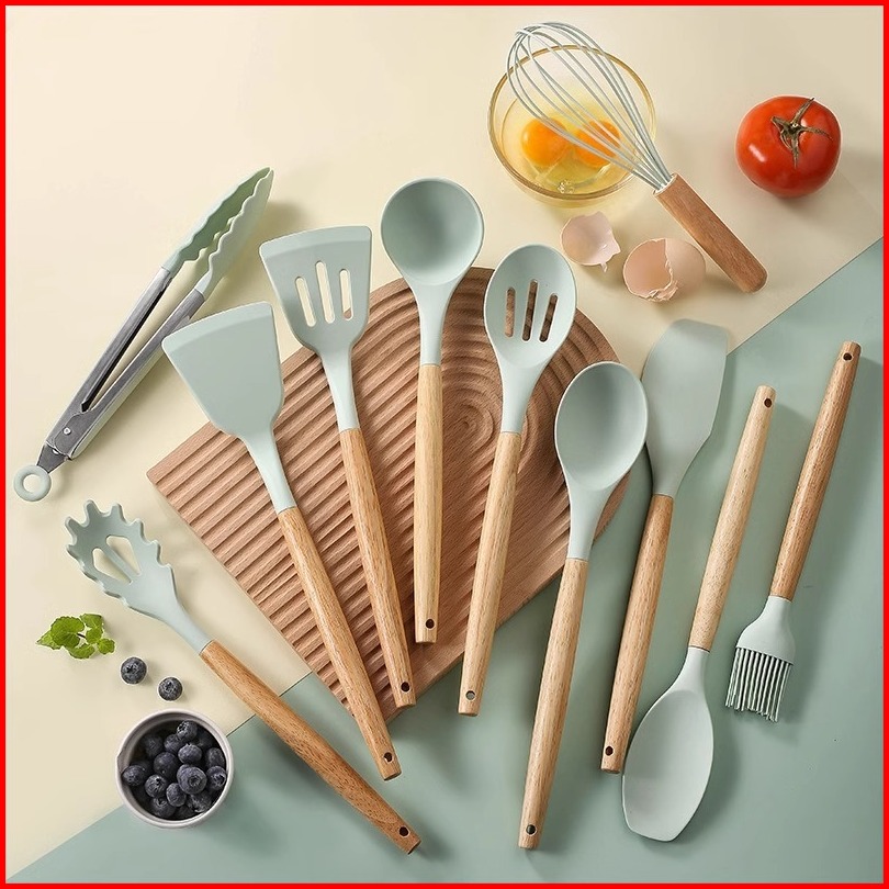 High Quality Alat Dapur Silikon Spatula Silicone Alat Tahan Panas Peralatan Masak Set 12pcs