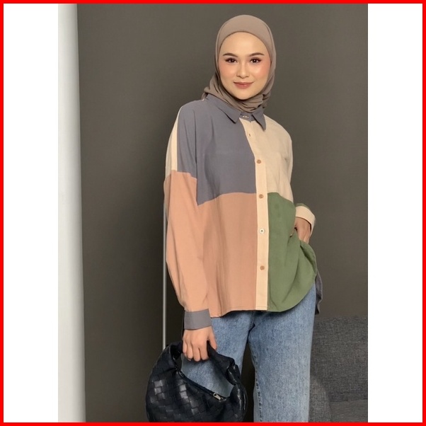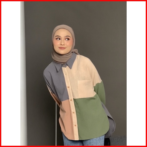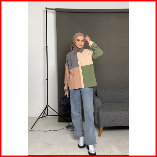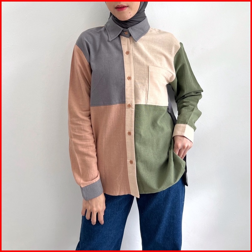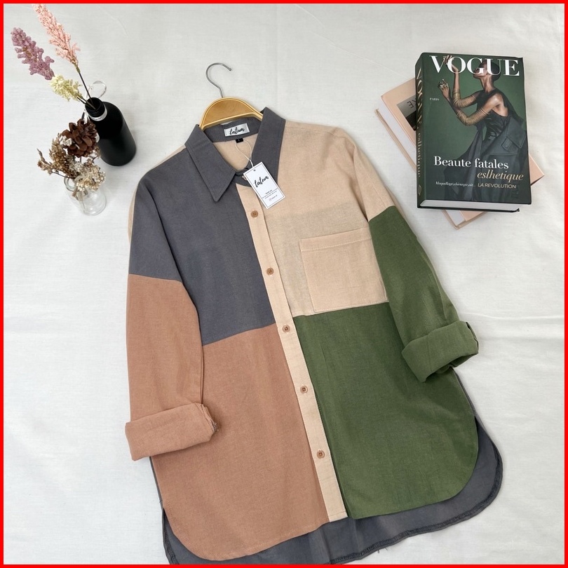 Jeju Top Shirt Wanita Kemeja Cewek Oversize Baju Atasan Lengan Panjang Katun Linen