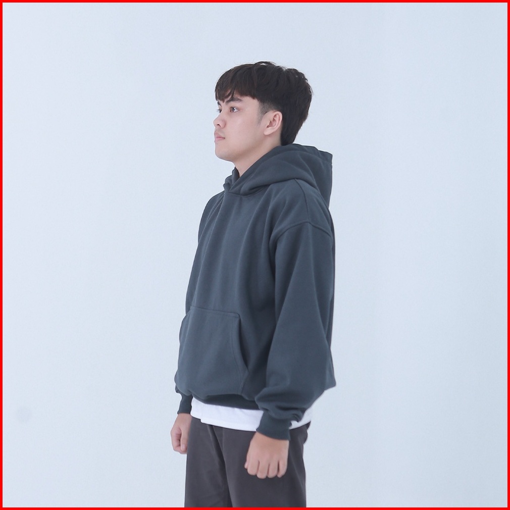 Hoodie Boxy Oversize Dark Grey Pria Wanita Cotton Fleece Tebal