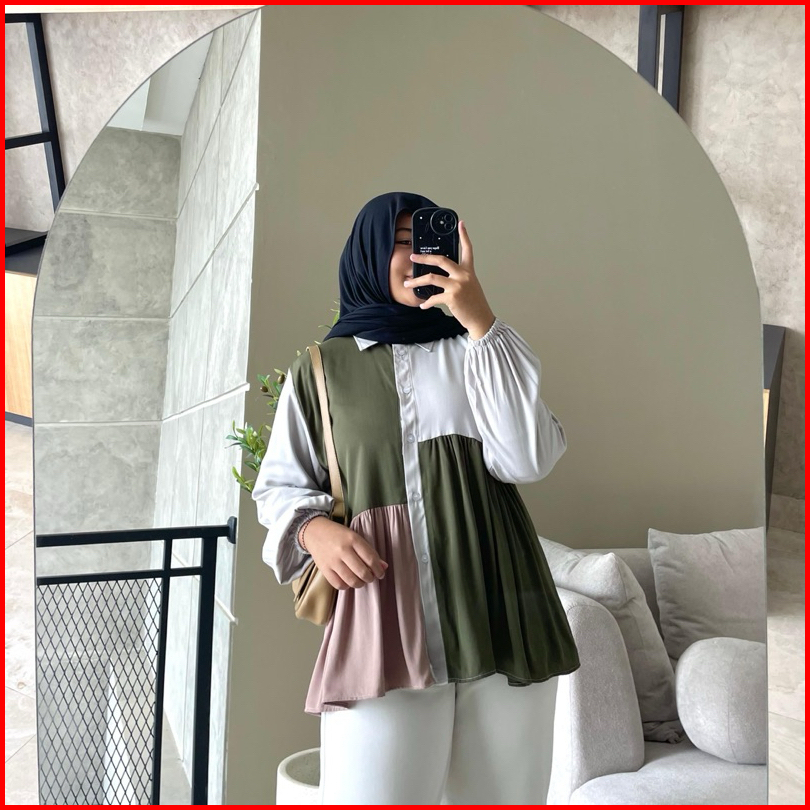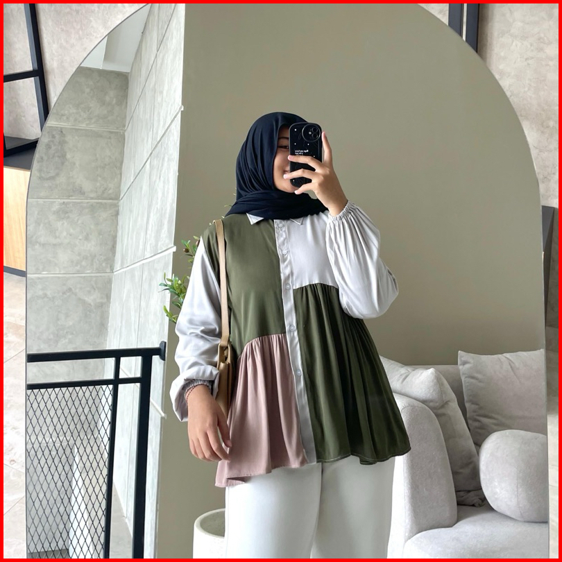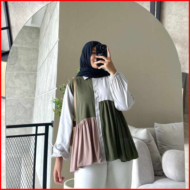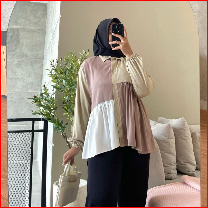 Hanako 730 Kemeja Rempel Kombinasi Kemeja Atasan Wanita