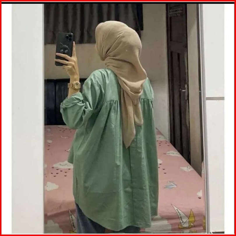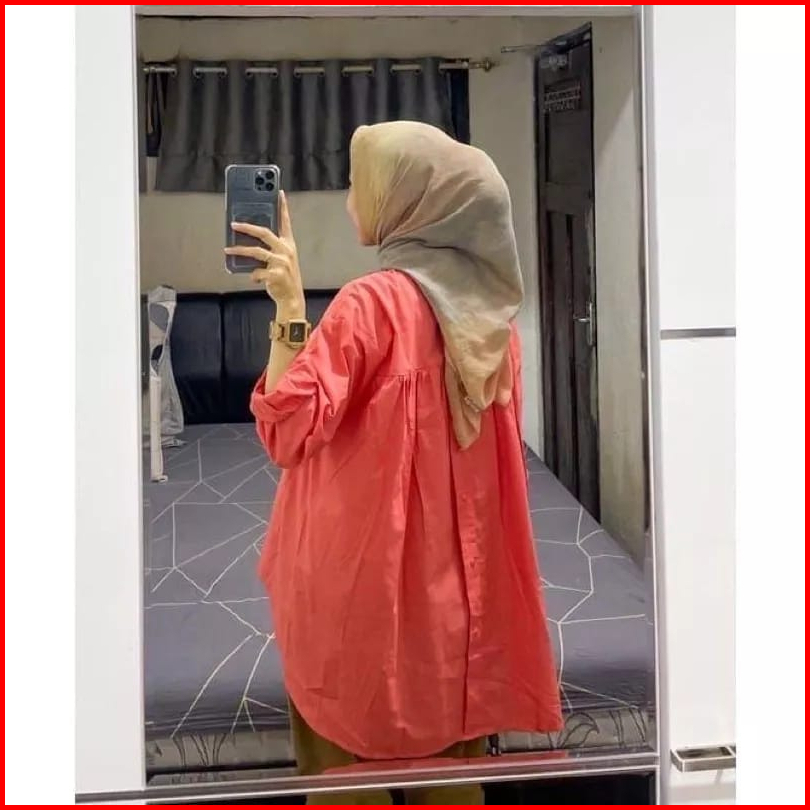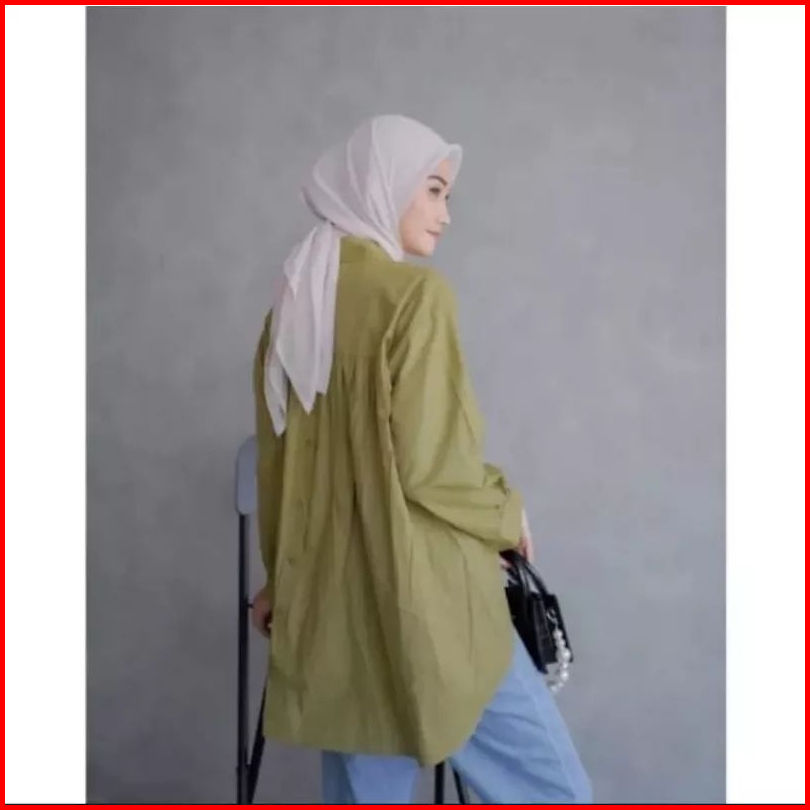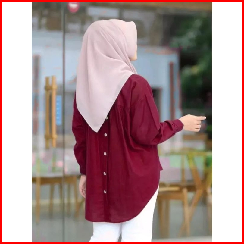 Kemeja Hem Wanita Rika Blouse Atasan Kekinian Top Lengan Panjang Kancing Belakang Korean Style Trend Jumbo Over Size Pre