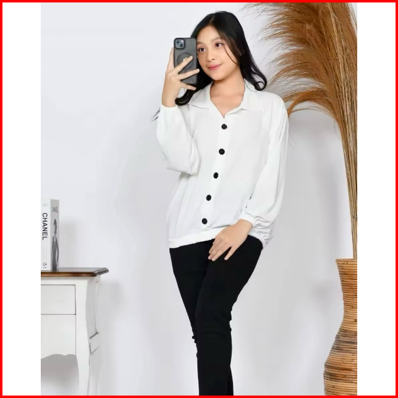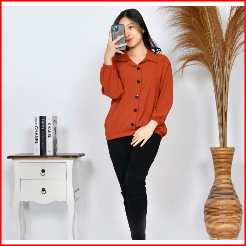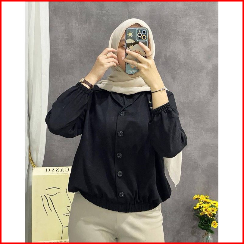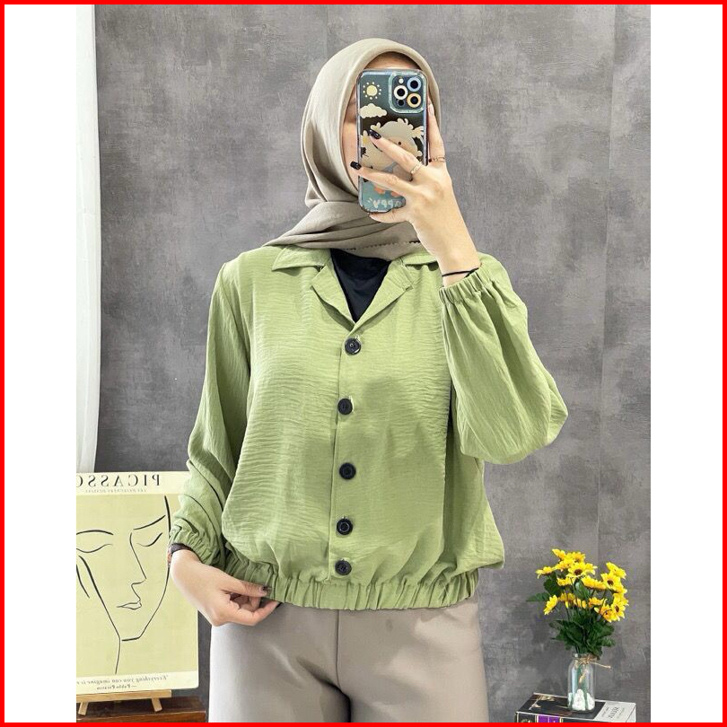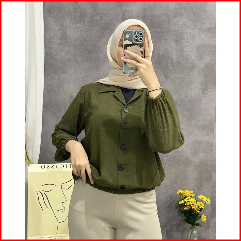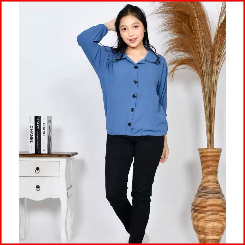 Kemeja Crop Bahan Crinkle Blouse Cewek Crop Top Atasan Wanita Terkini