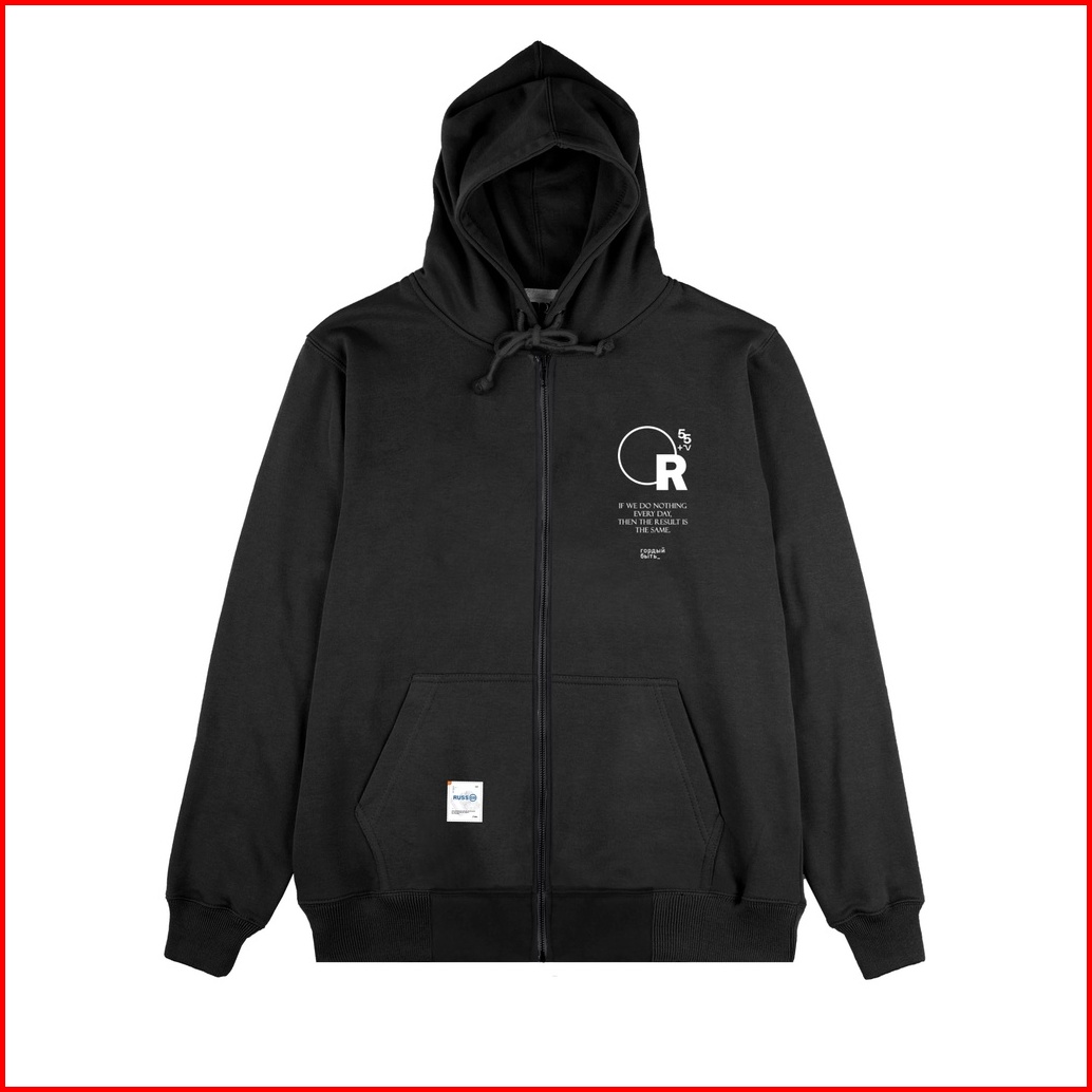 Russ Sweater Hoodie Pria Zipper Wording Black Up To Big Size