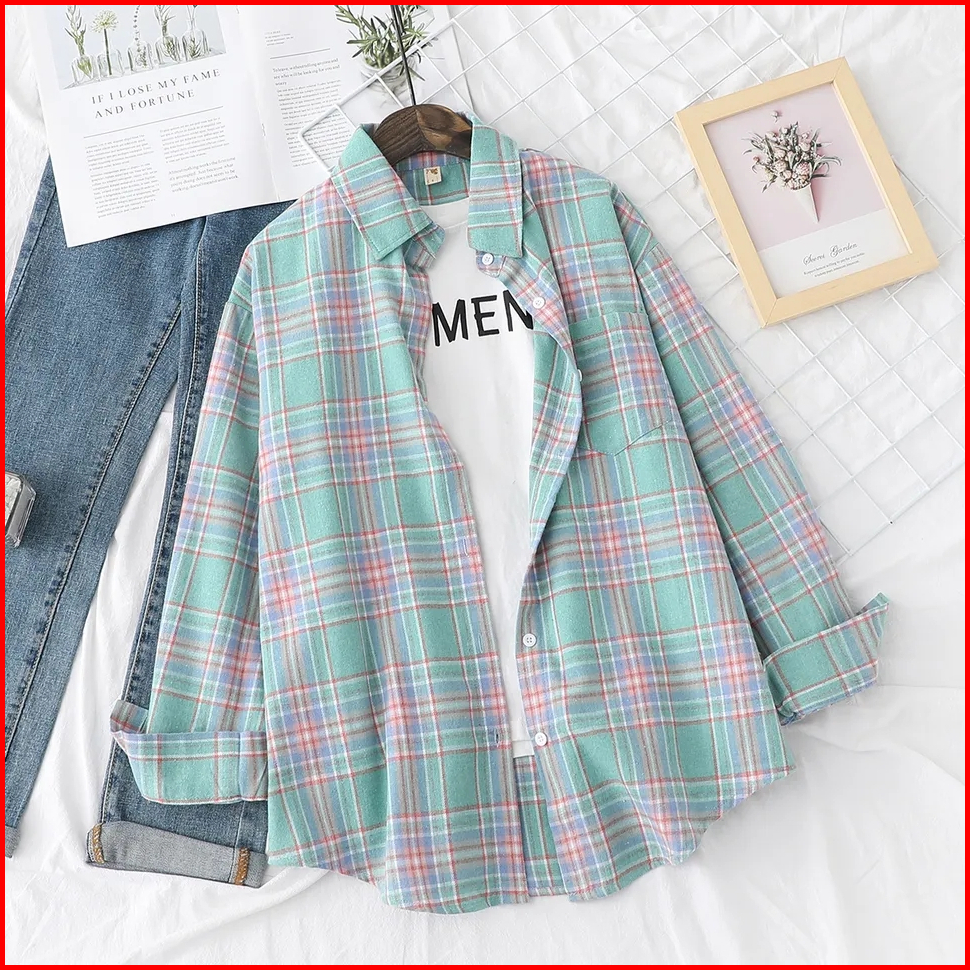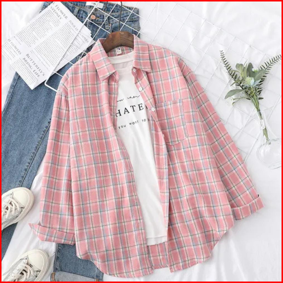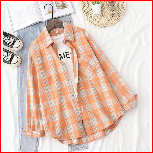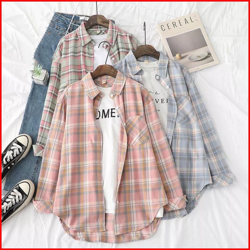 Lamona - Kemeja Ootd Oversize Wanita - Kemeja Wanitakotak Kotak - Kemeja Wanita Korean Style - Kemeja Cewek Terbaru 2022