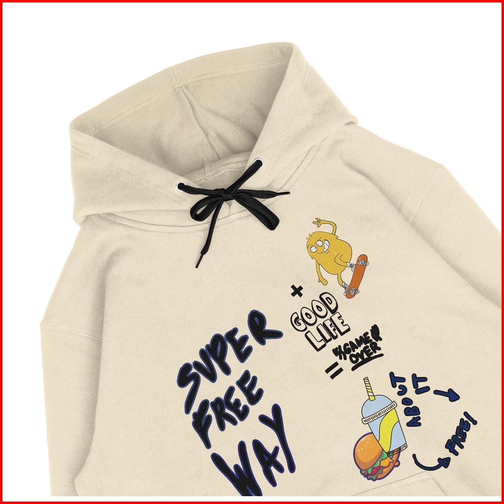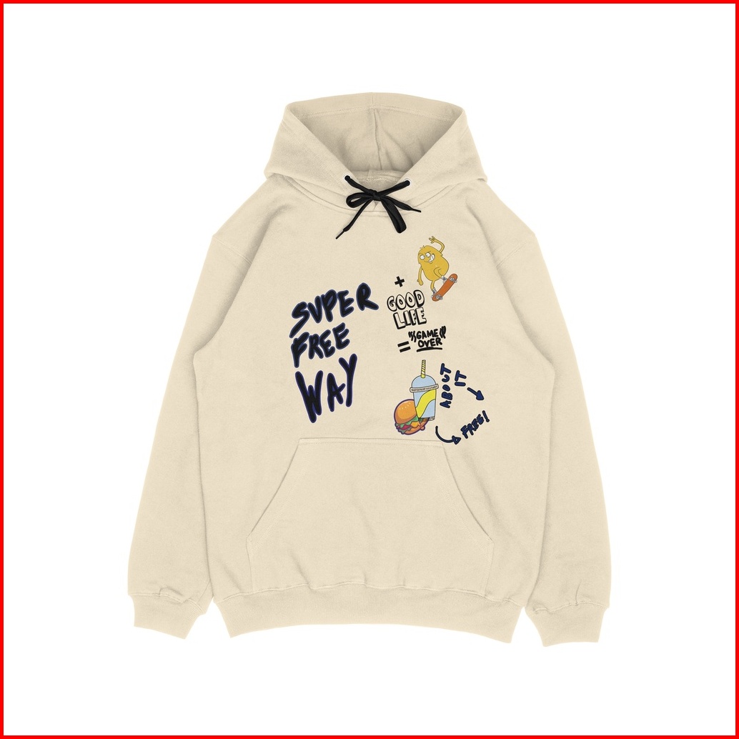 Ootdsupply - Pullover Hoodie Free Way Cream Pakaian Pria Wanita Hd021