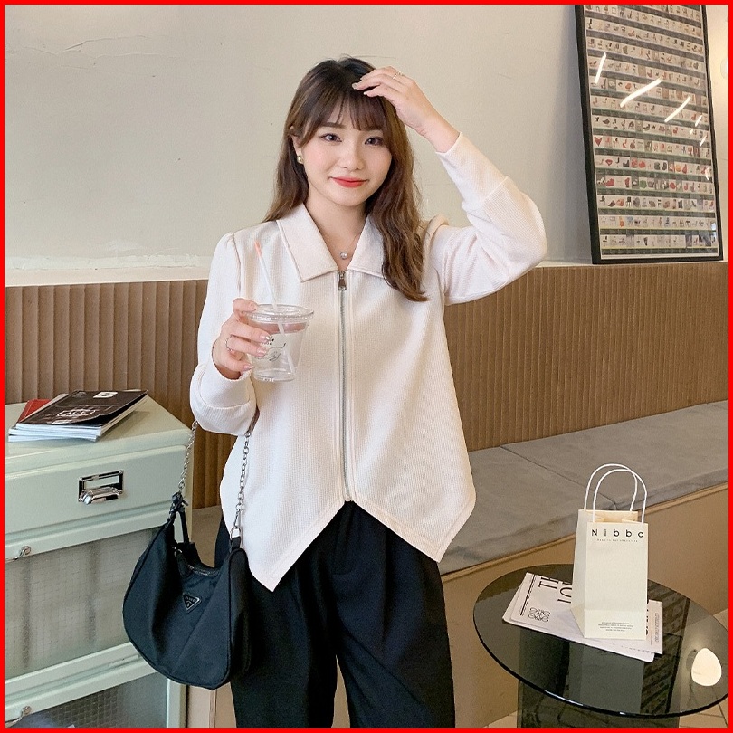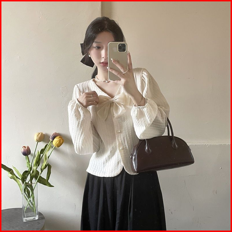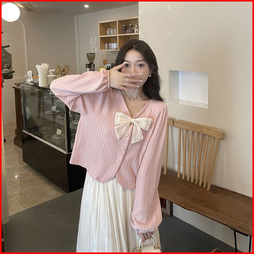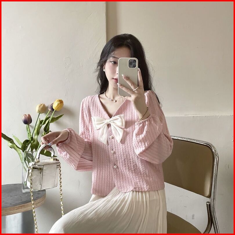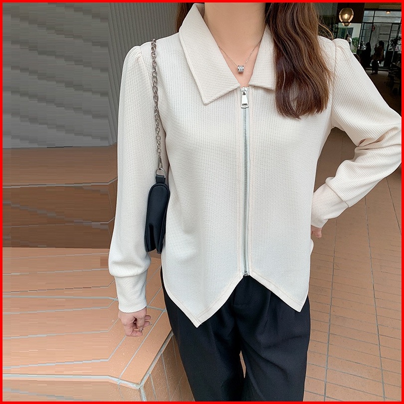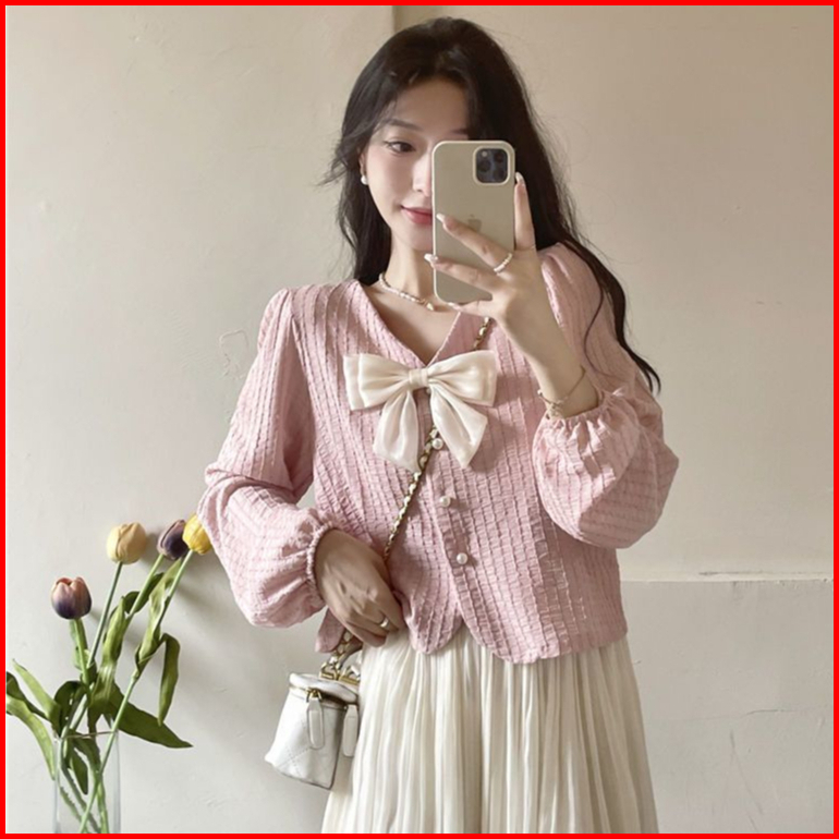 Kekinian Kemeja Lipatan Wanita Lengan Panjang Polos Korean Lucu Blouse