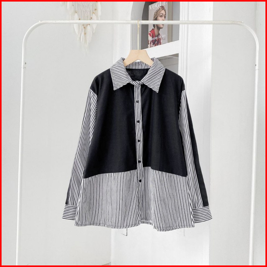 Azka Shirt Top Atasan Kemeja Oversize Wanita Basic Casual Daily Lengan Panjang Matt Cotton Premium Kombinasi Ootd Fashio
