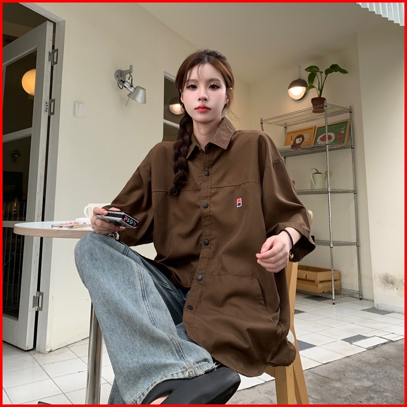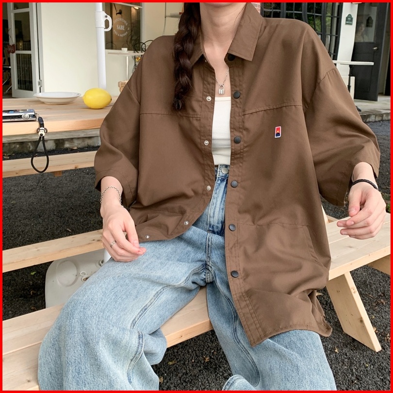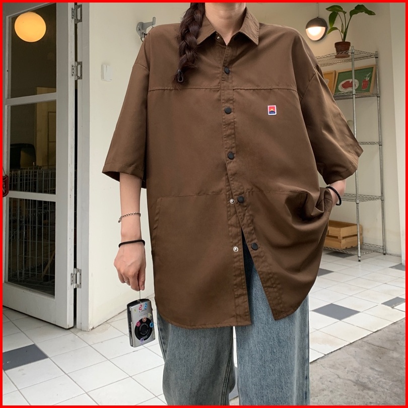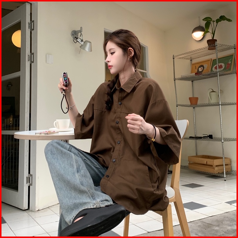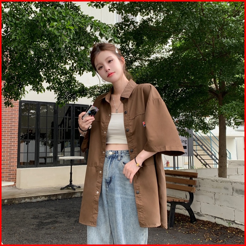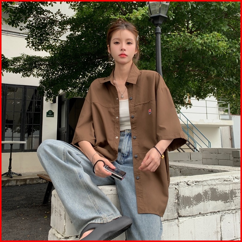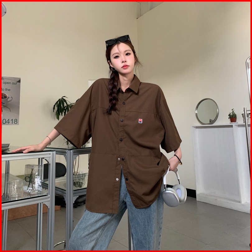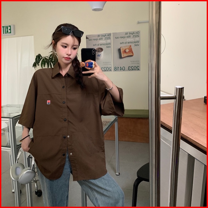 Kemeja Wanita Shirt Basic Lengan Pendek Kemeja Lengan Pendek Kasual Pakaian Kerja Retro Amerika