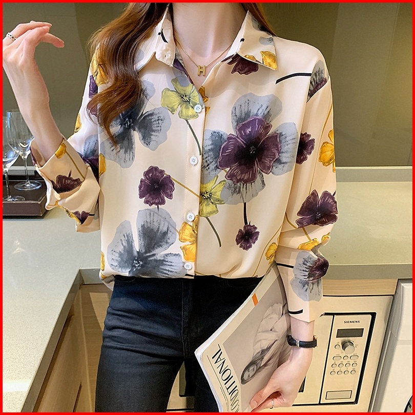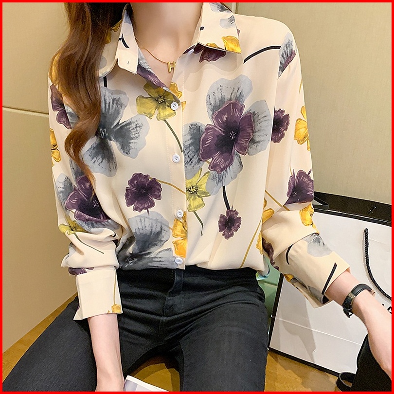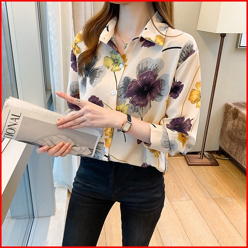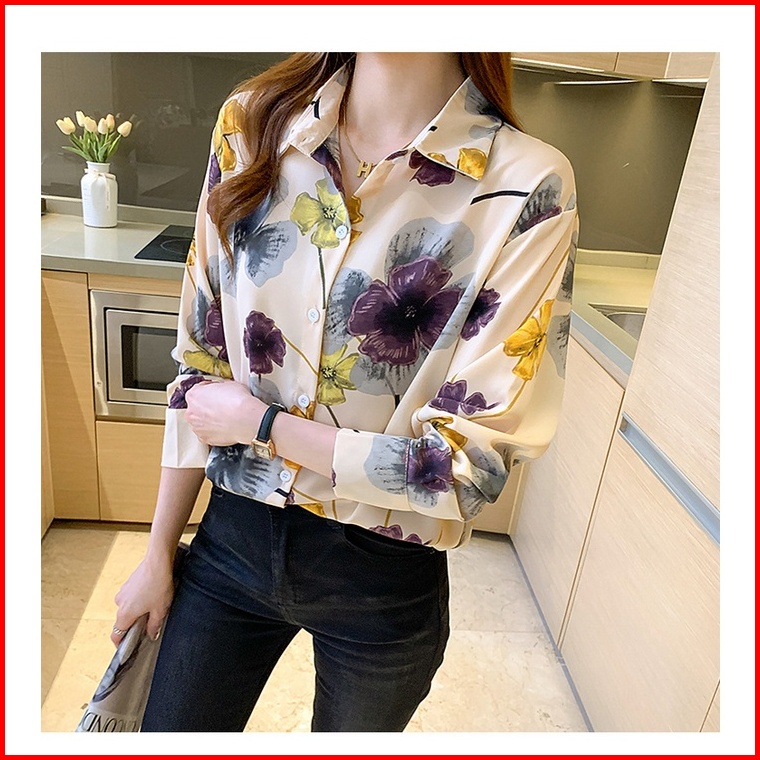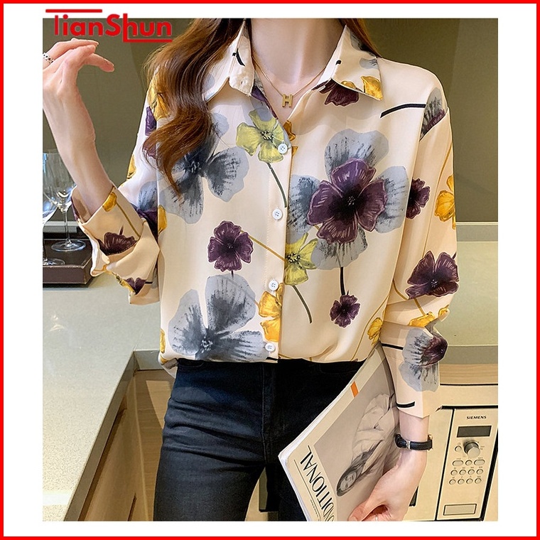 Tianshun Chiffon Printed Fabric Long Sleeve Shirt Korean Version Fashion Casual Ol Top Women S Shirt