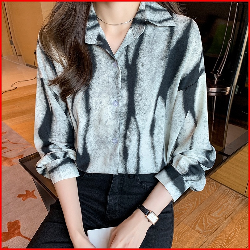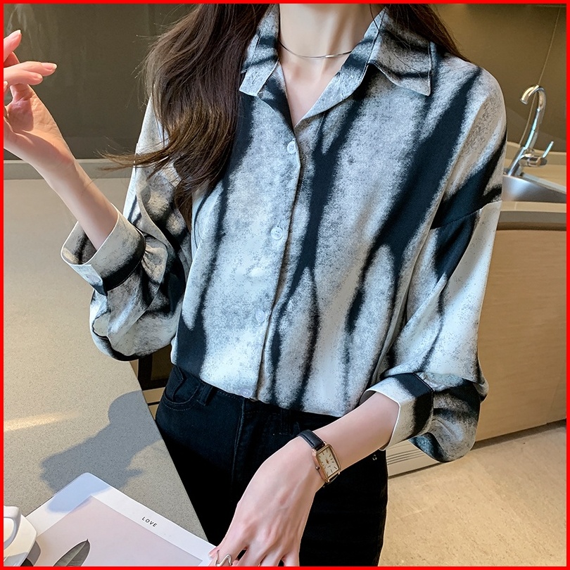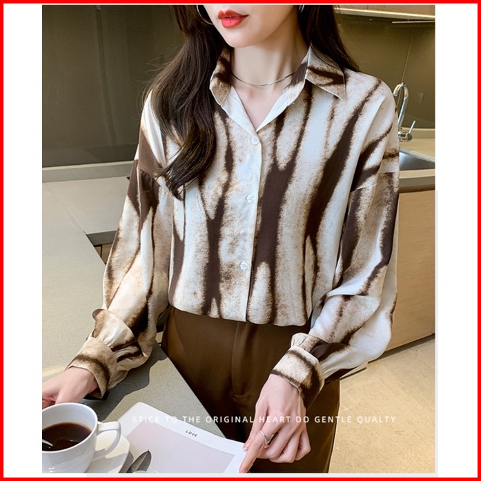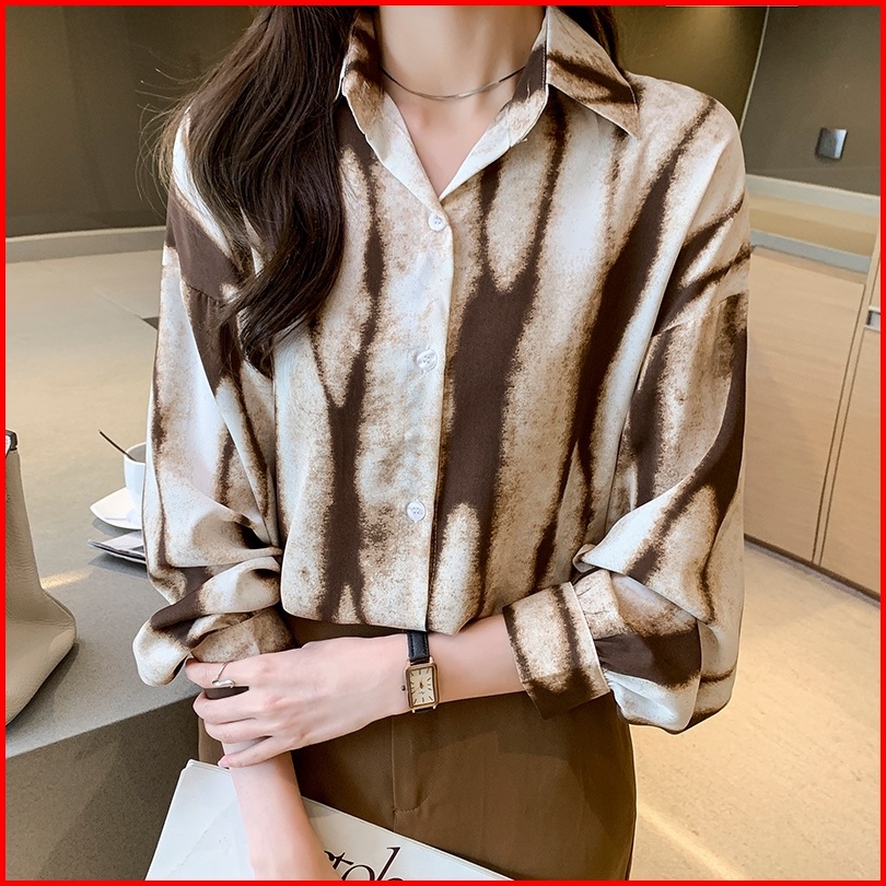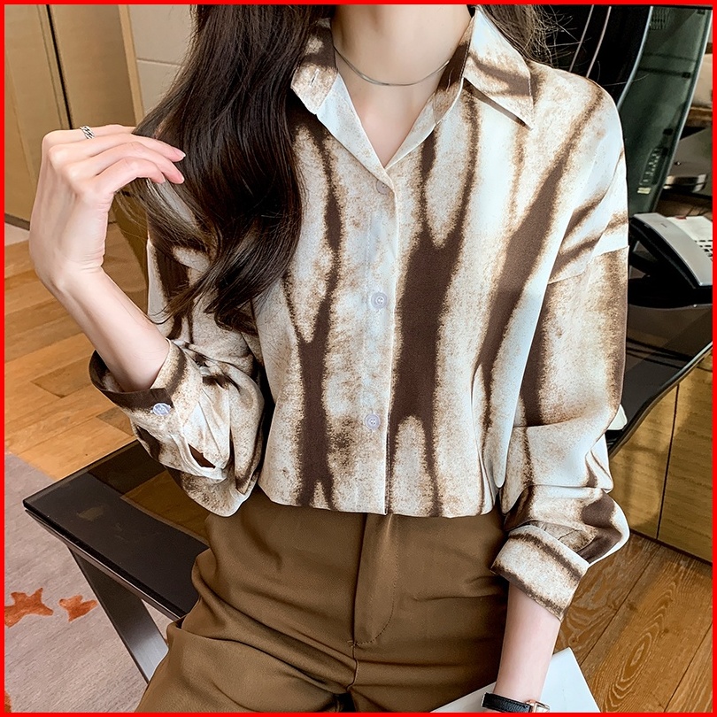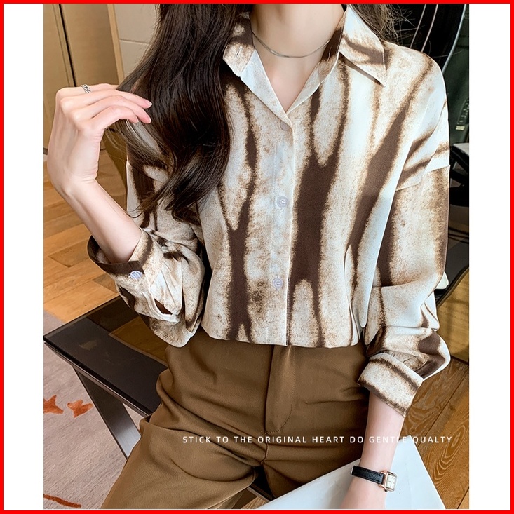 High Quality Fabric Long Sleeve Shirt For Women Khaki Black Geometric Pattern Fashion Street Retro Spring And Autumn Lap