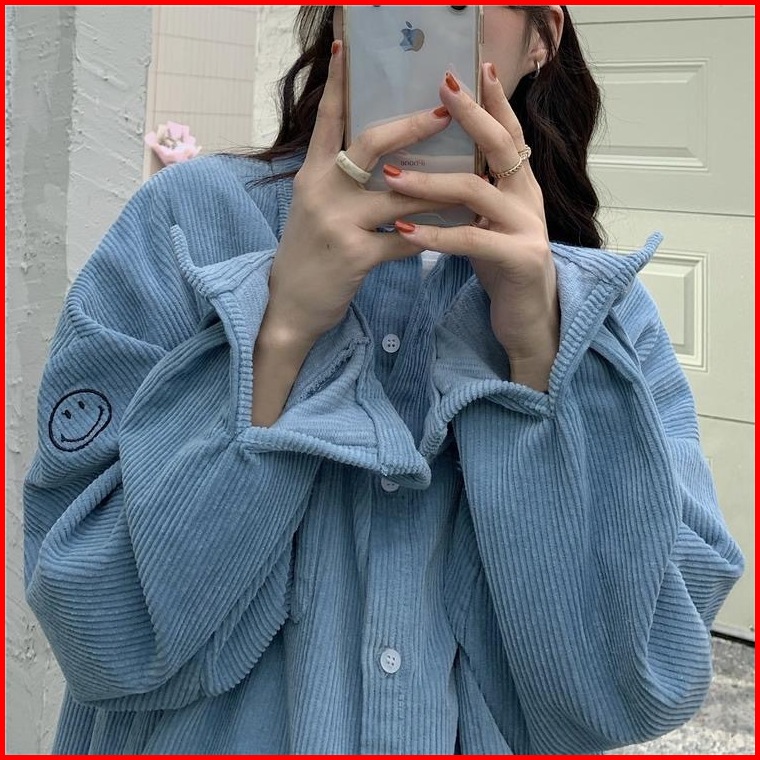 Xiaozhainv Korean Style Kemeja Korduroi Baju Atasan Wanita Korea Hw0002