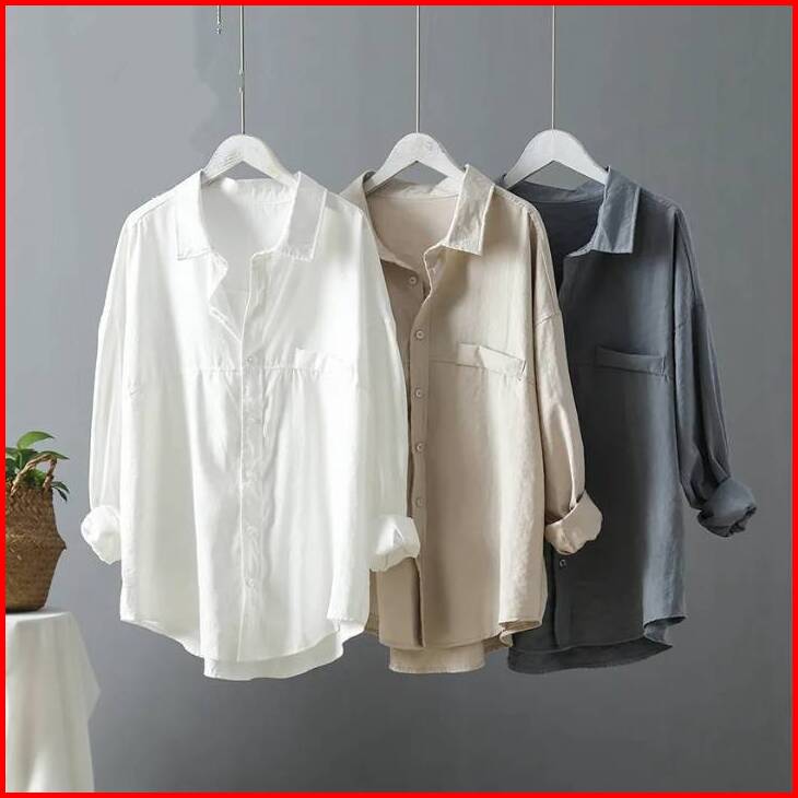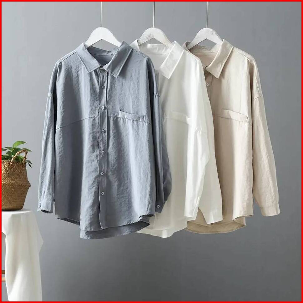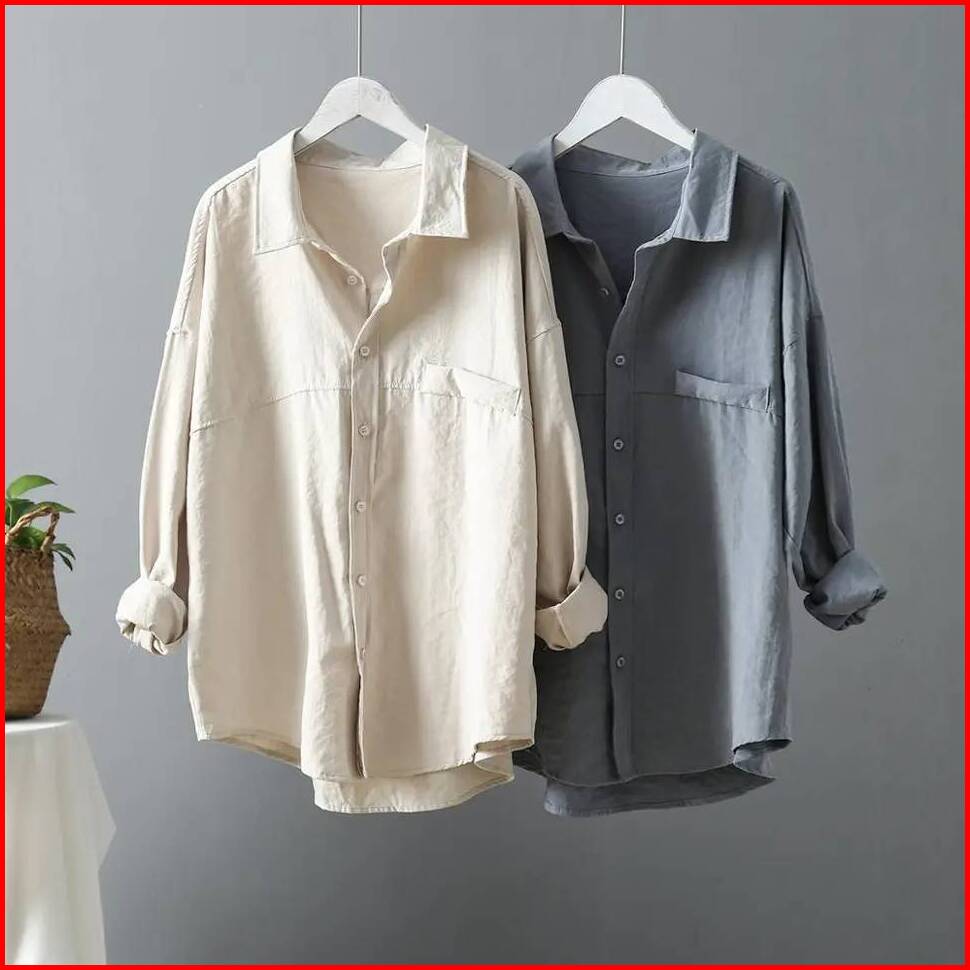 Chic.id - Kemeja Wanita Lengan Panjang Shirt Baby Corduroy Oversize Kemeja Polos Wanita Atasan Kemeja Wanita Kekinian Ke