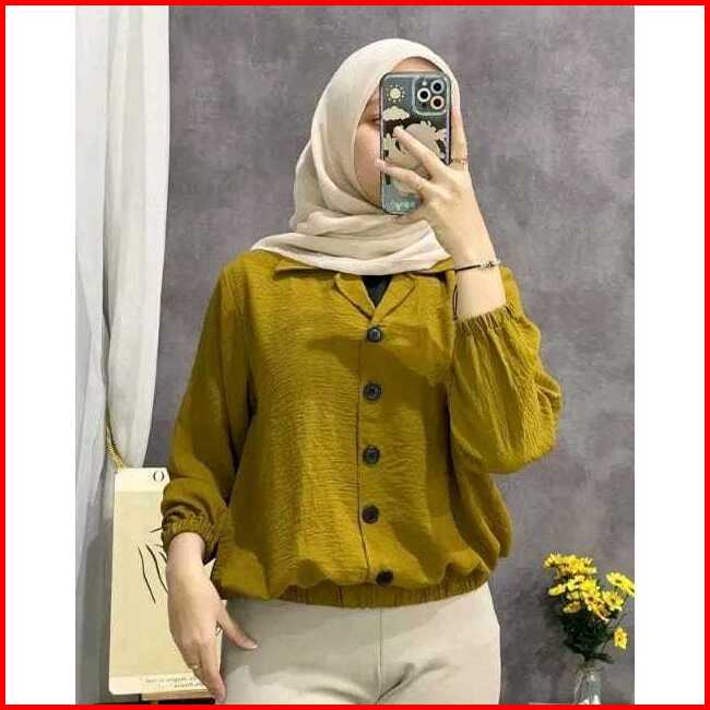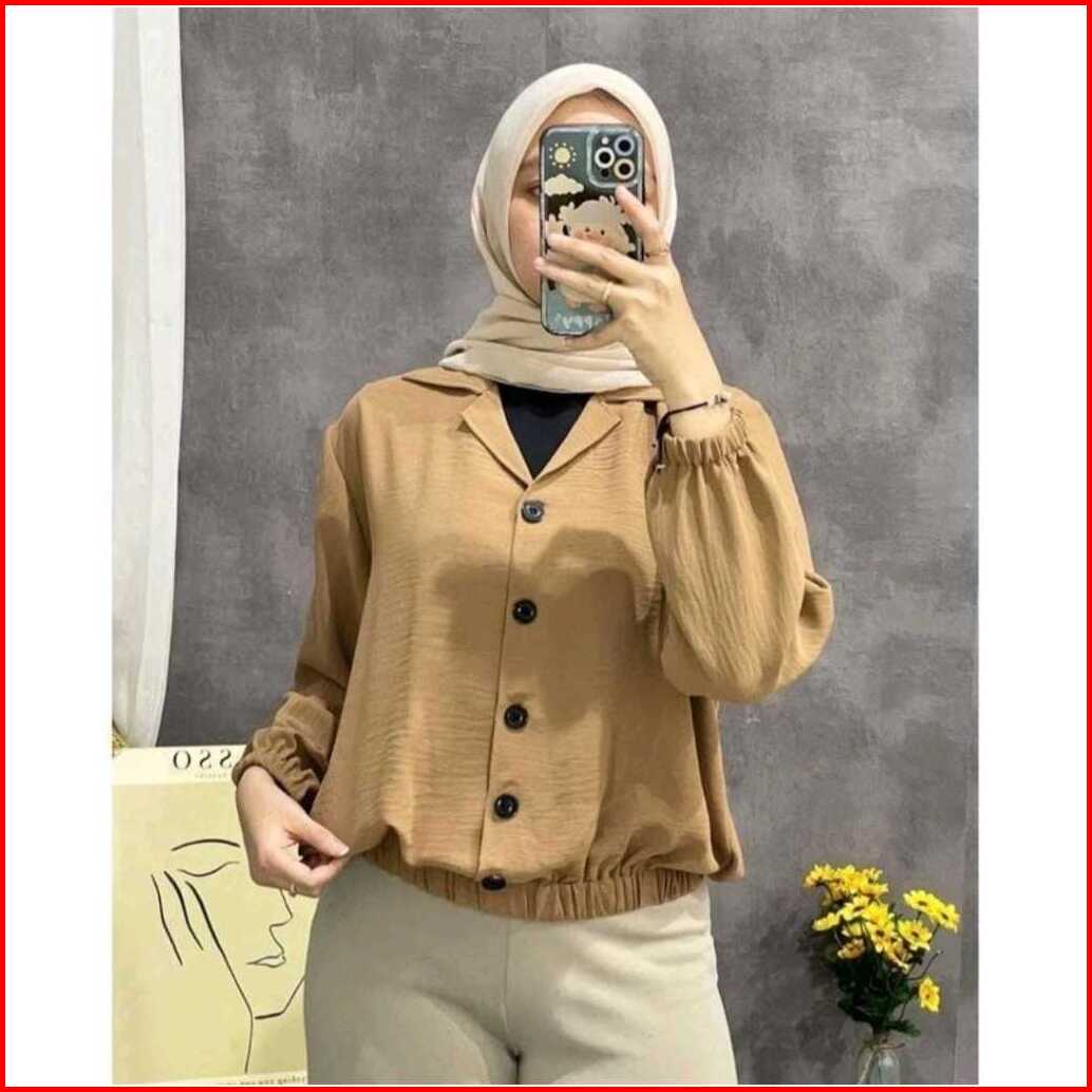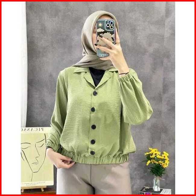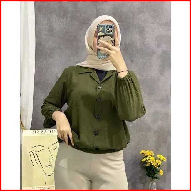 Atasan Kemeja Kekinian Model Terbaru Bahan Crinkle Airflow Premium Tangan Dan Pinggang Karet