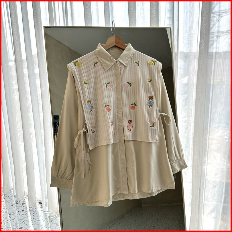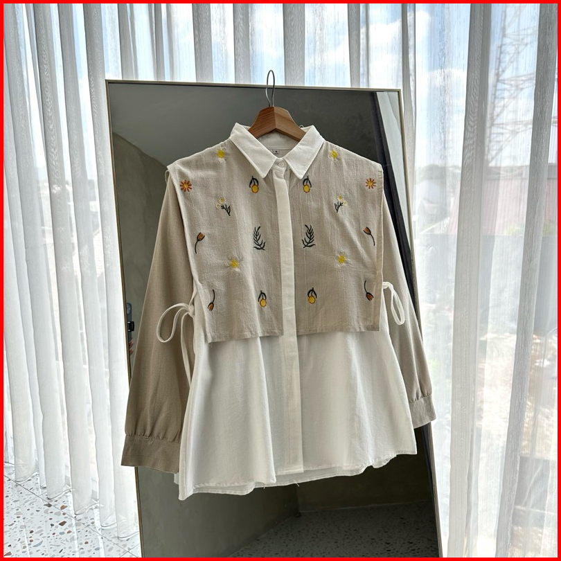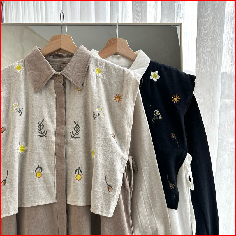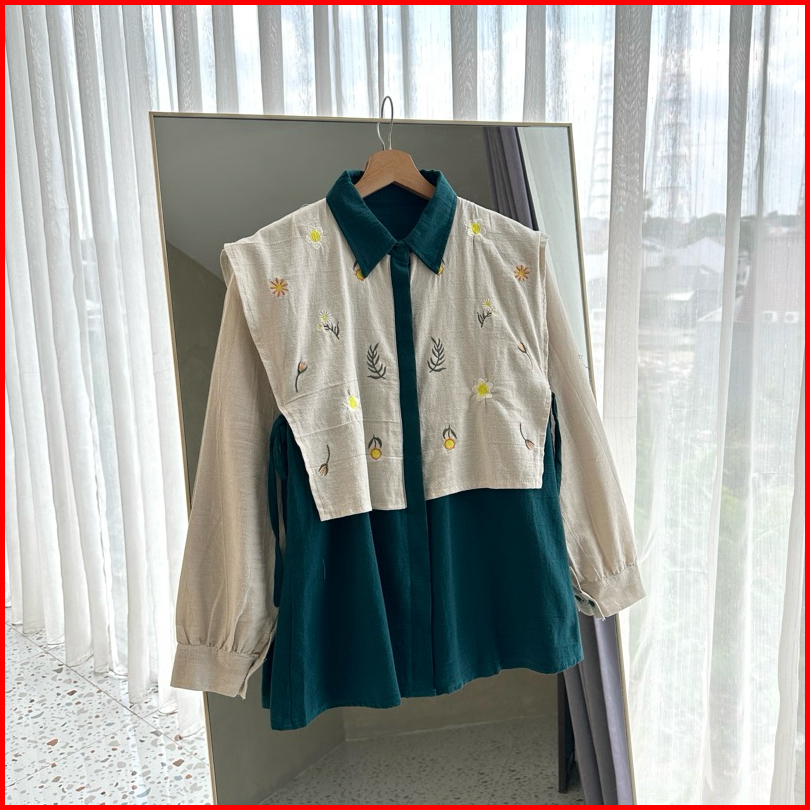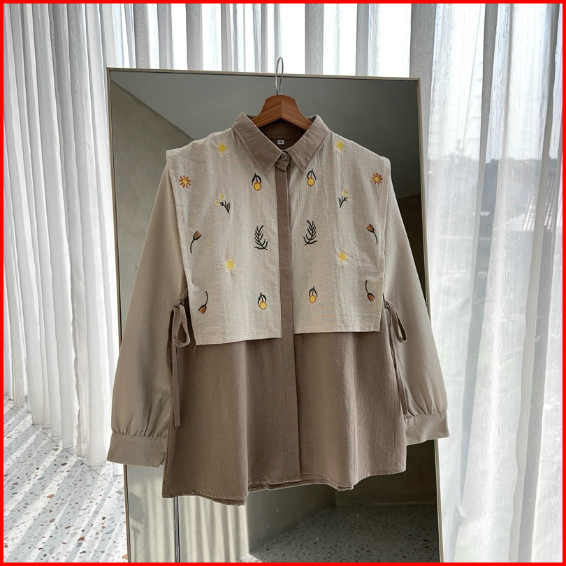 Myshirt Kemeja Vest Linen Bordir Atasan Linen