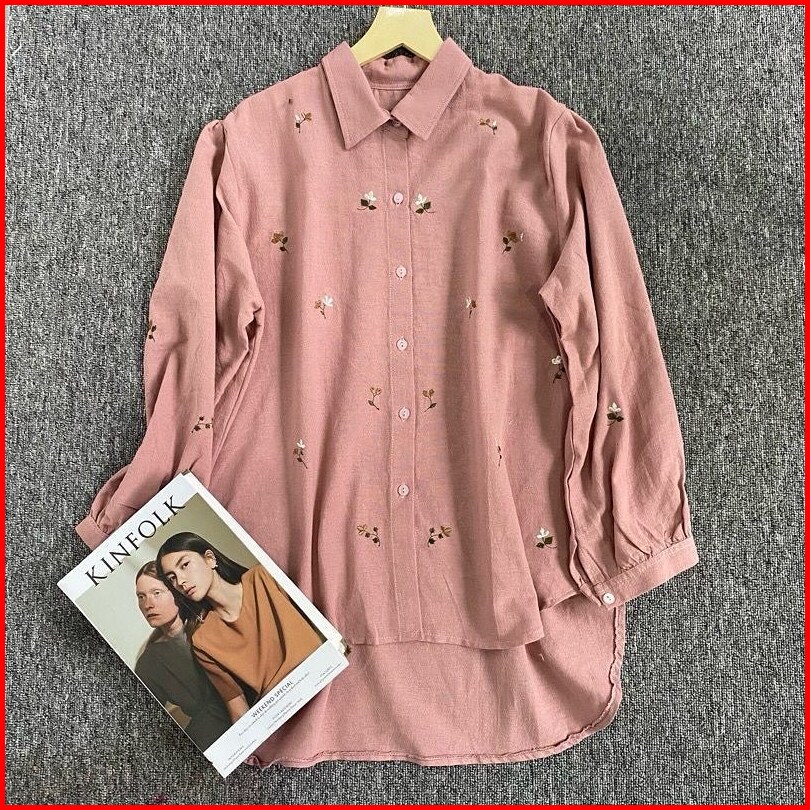 Basic Blouse Bahan Linen Rami Baju Atasan Wanita Terbaru Kemeja Wanita Blouse Korean Style Elf