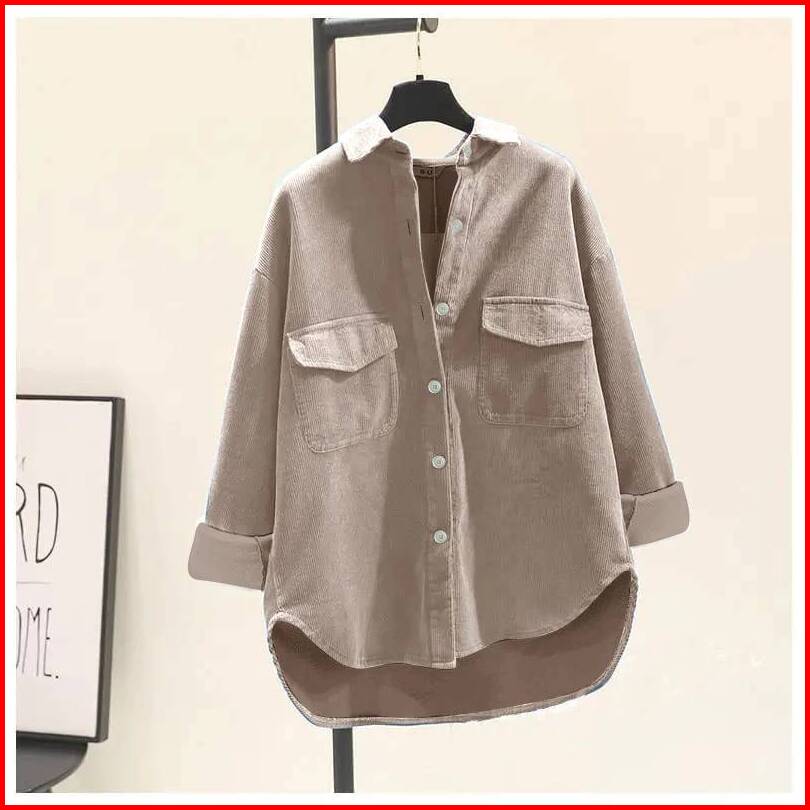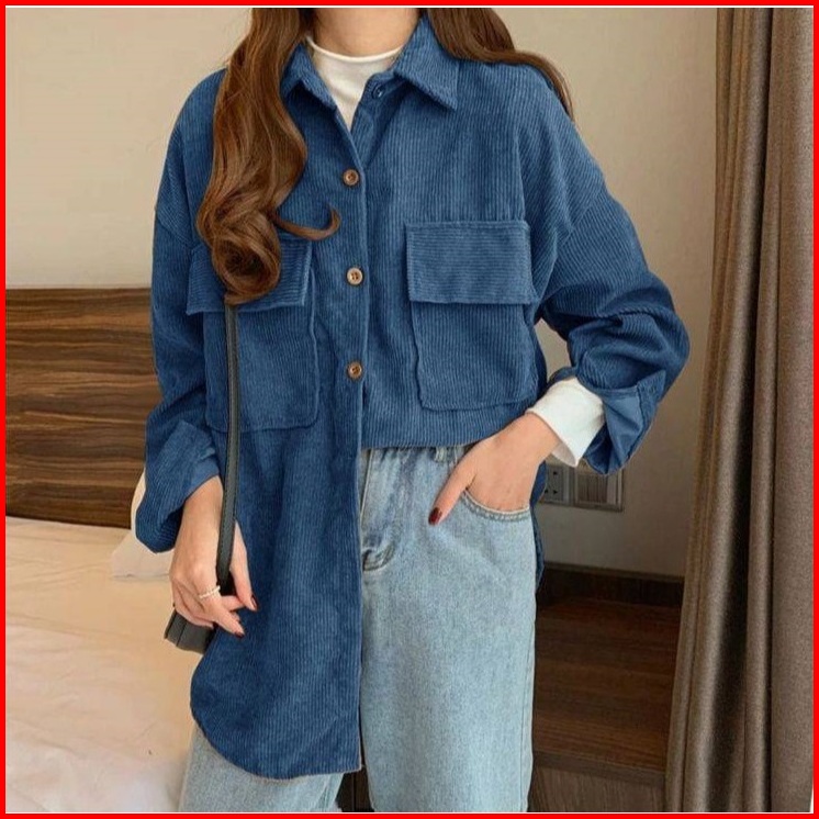 Mozza - Outher Wanita Terbaru Kemeja Wanita Korduroi Lengan Panjang 2 Pocket Atasan Wanita Premium