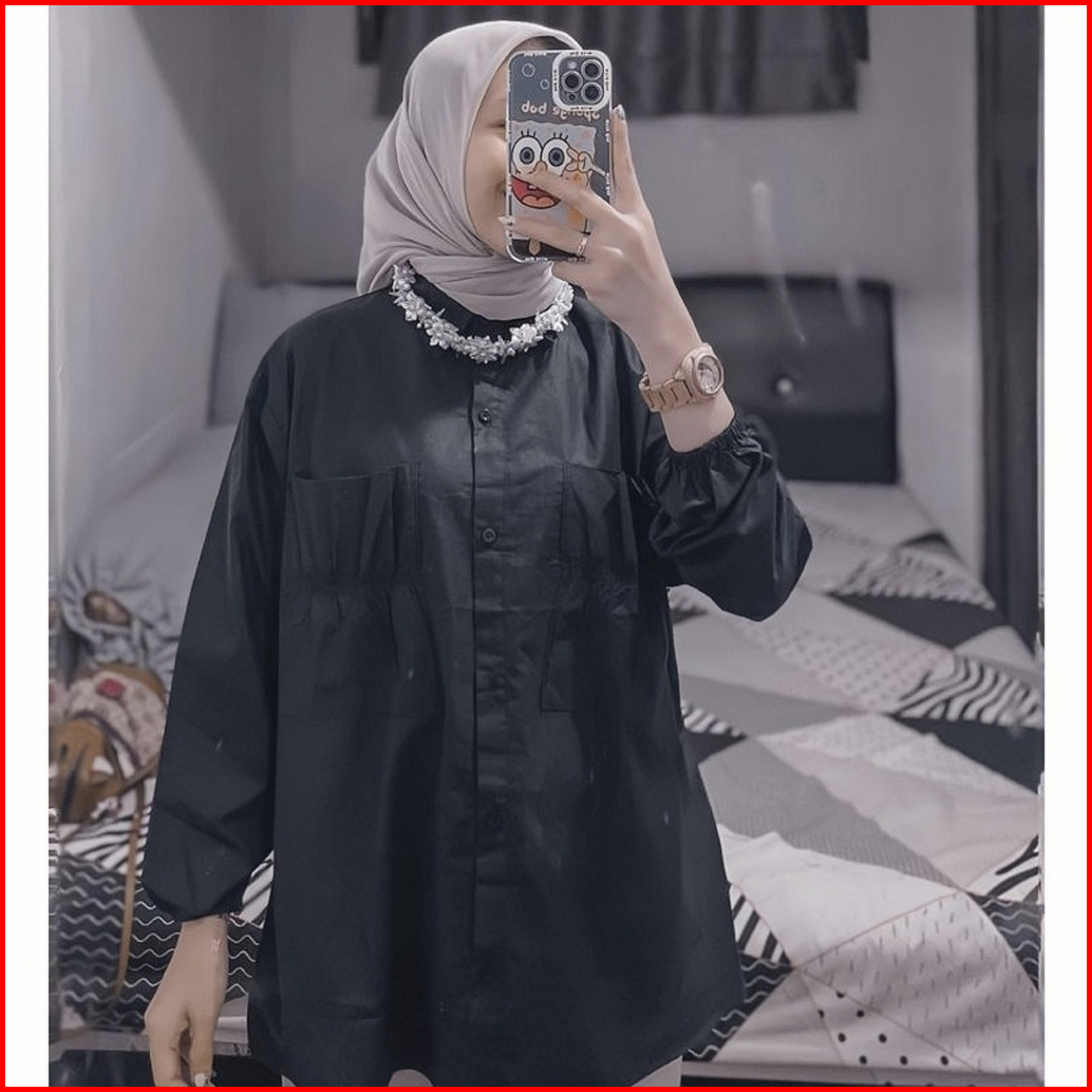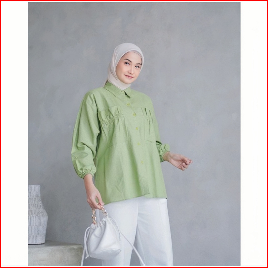 Blouse Ayra Kantong Serut Kemeja Polos Wanita Wanita Kekinian Style Korean