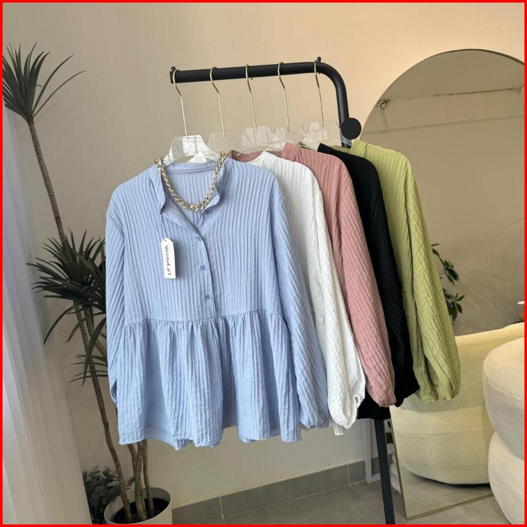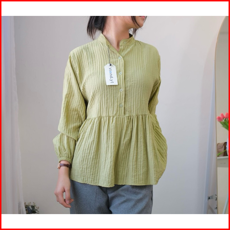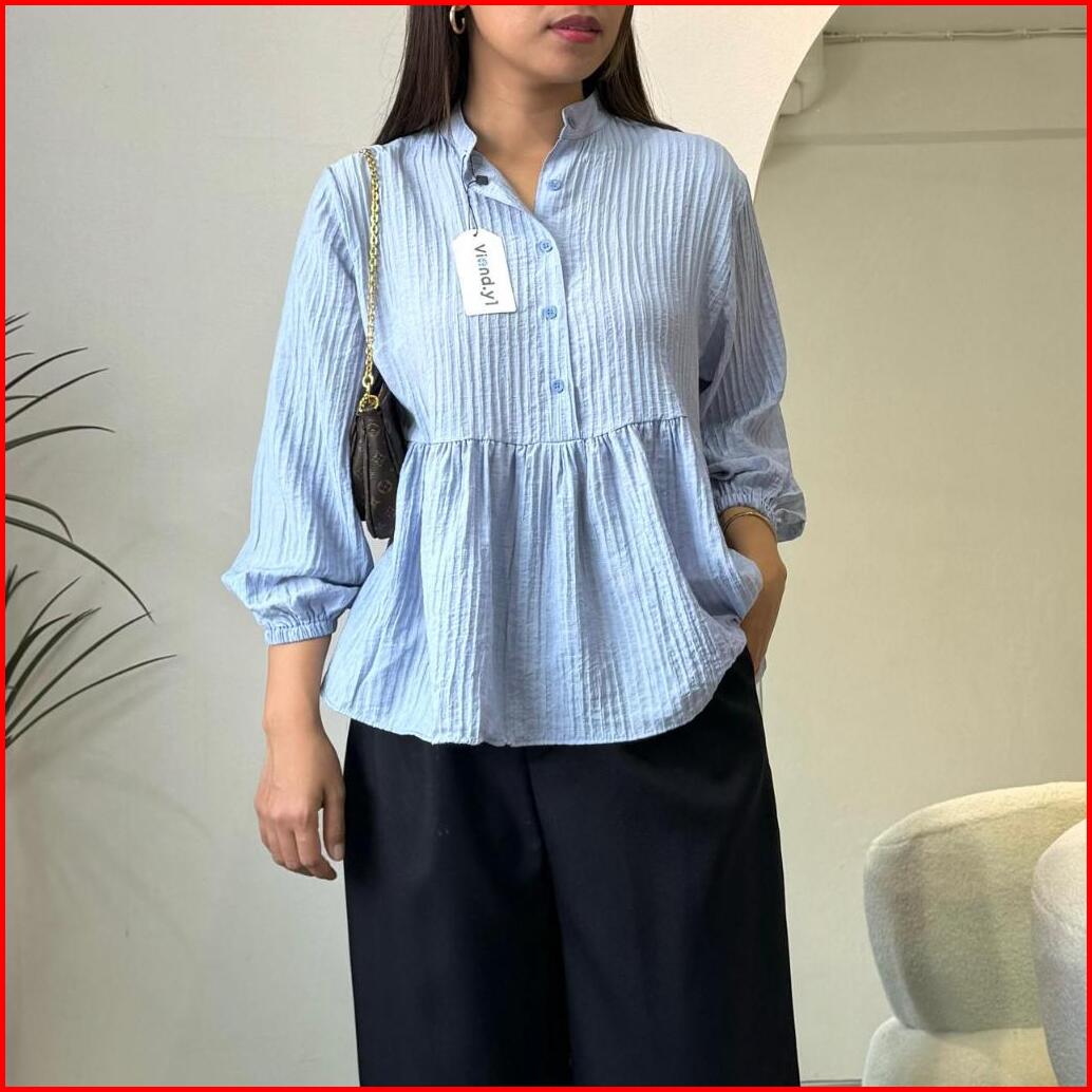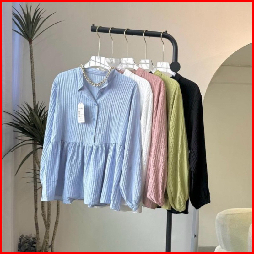 Atasan Wanita Kemeja Korea Blouse Blossom Lengan Panjang E.25