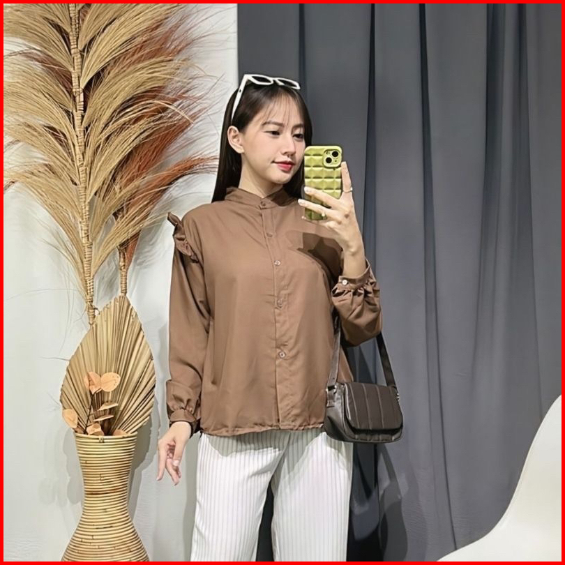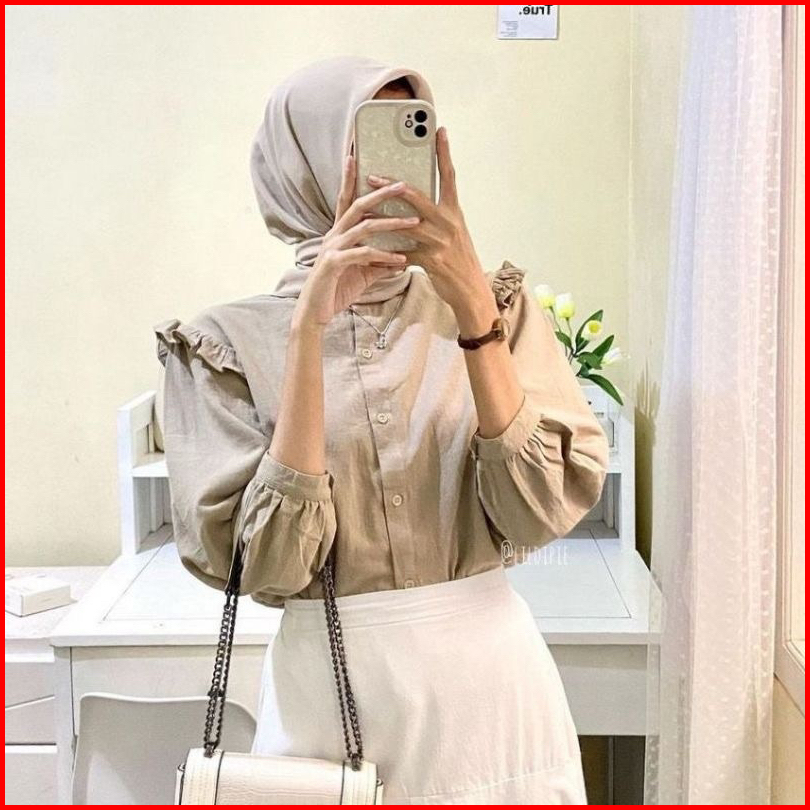 Yurim Blouse Ruffle - Atasan Wanita - Kemeja Linen Premium Basic Lengan Panjang