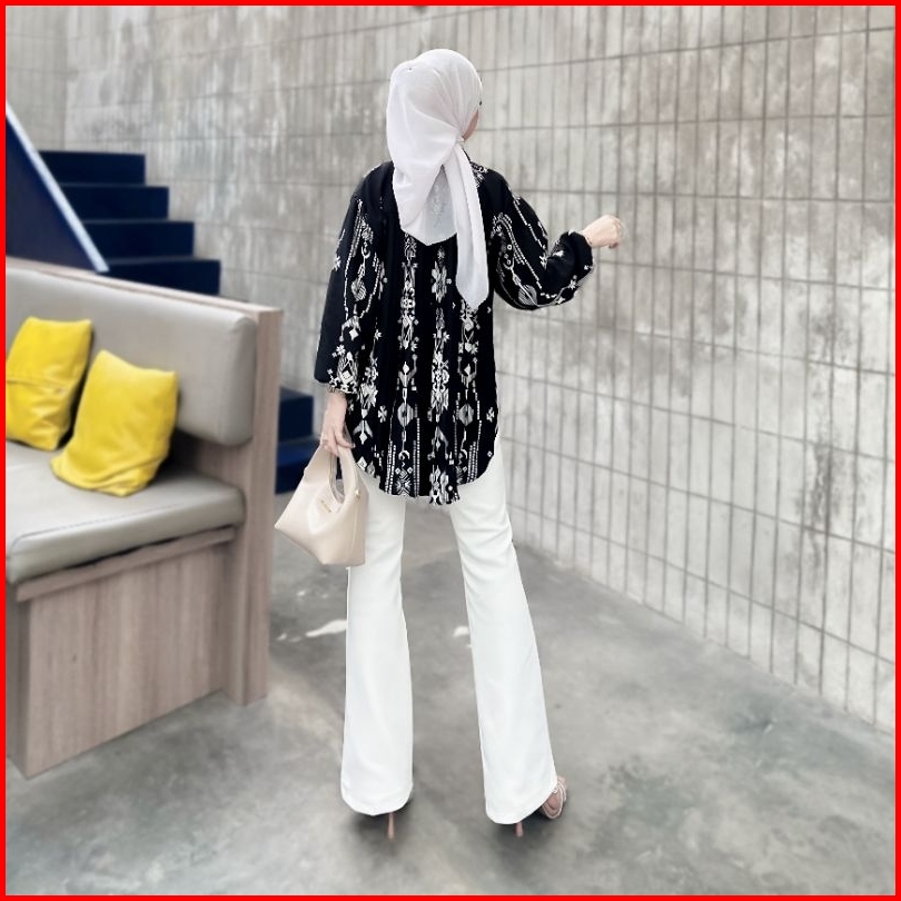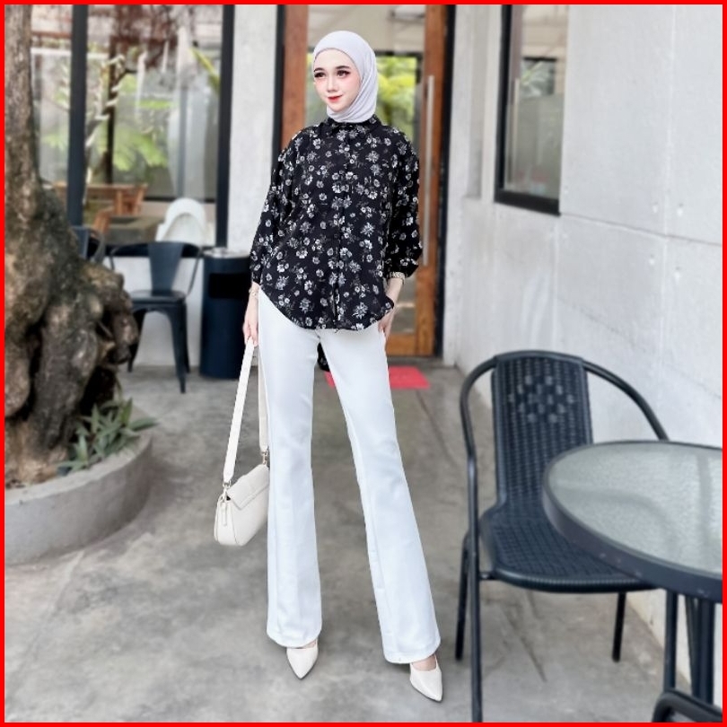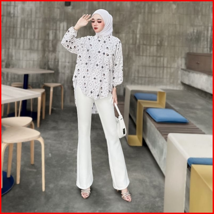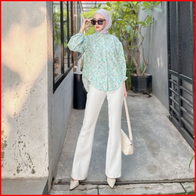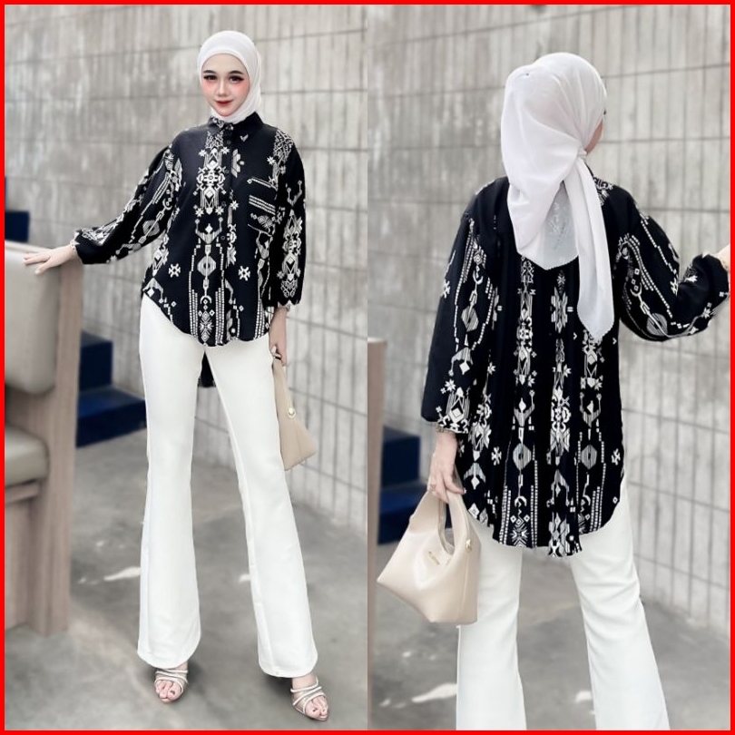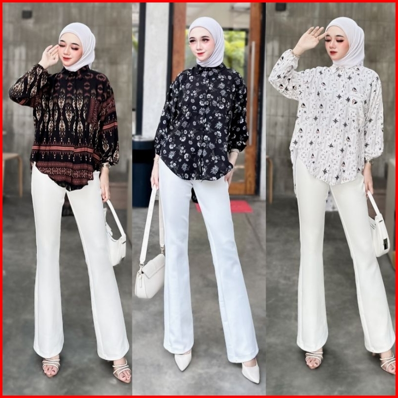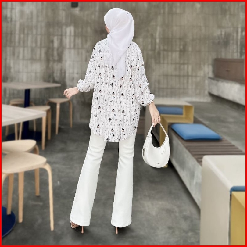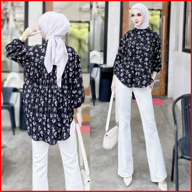 Kyea Blouse Plisket Motif Atasan Wanita Terbaru Kekinian Kemeja Wanita Oversize Airflow Rayon