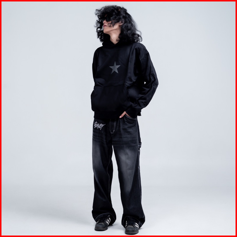 Satisfaction Hoodie Boxy 375gsm Logo Star Black