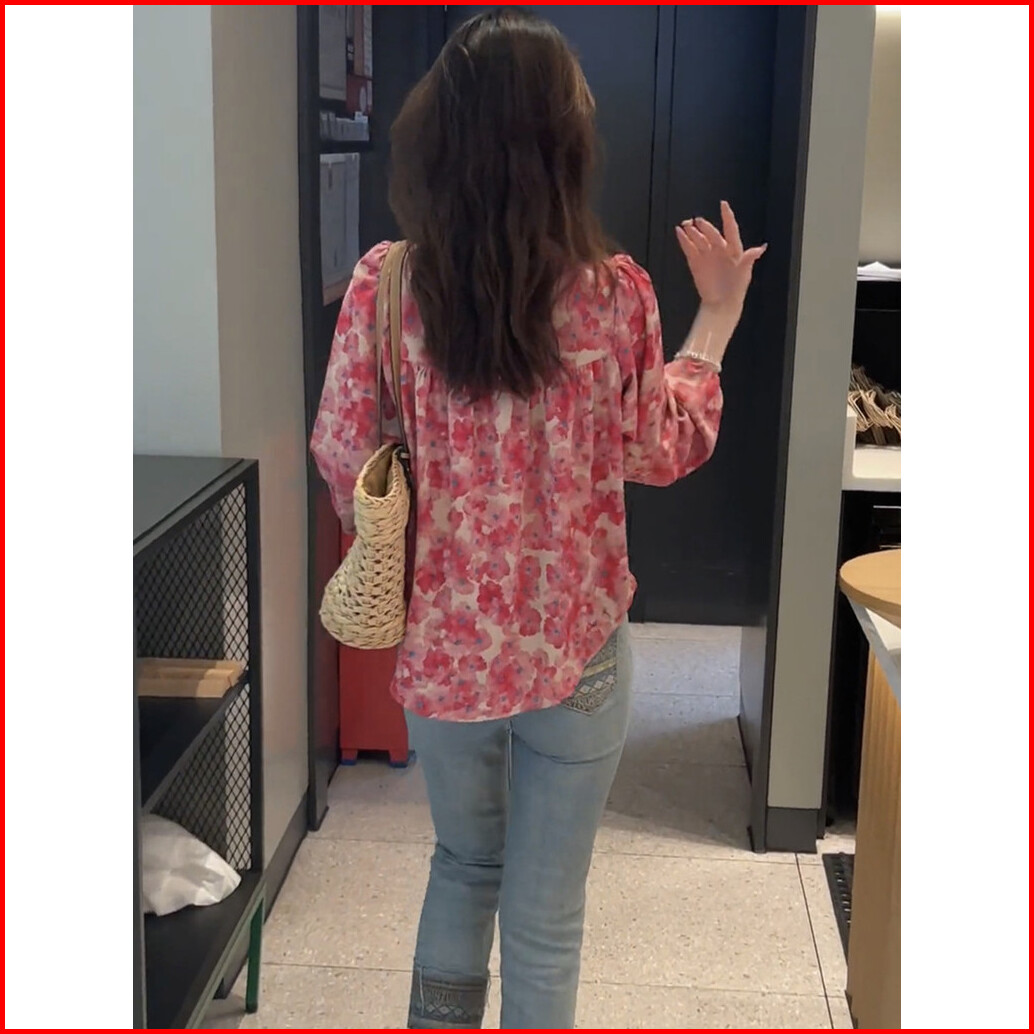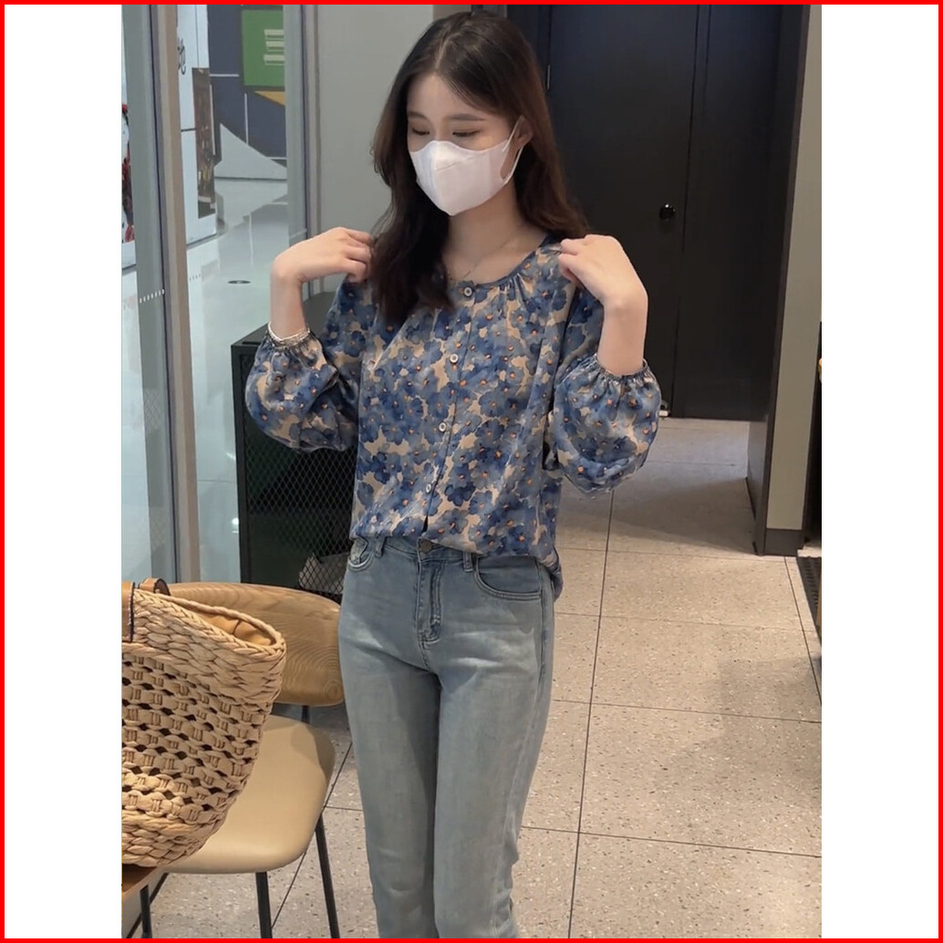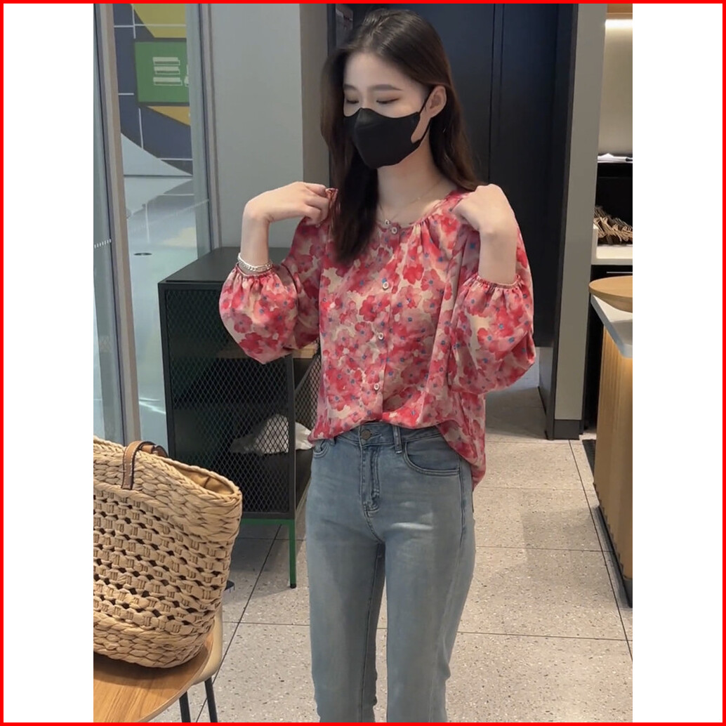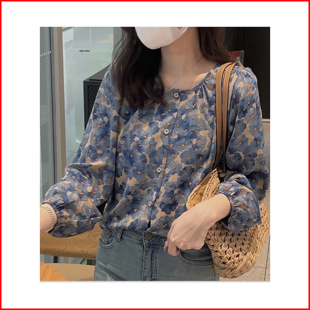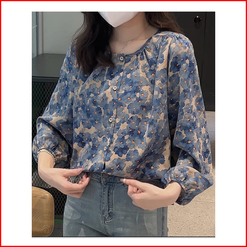 High Quality Fabric Red Blue Loose Sleeved Shirt Blouses For Women Fashion Korean Blus Longgar