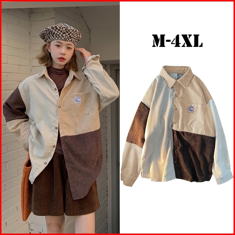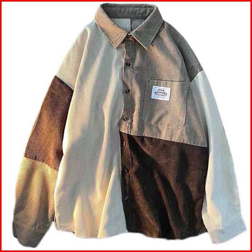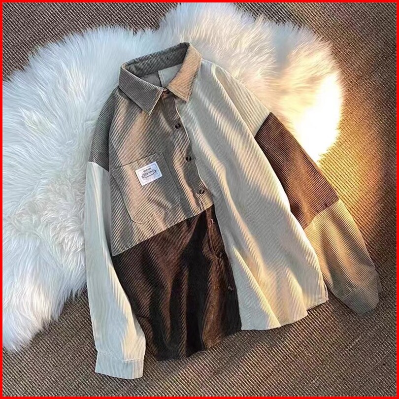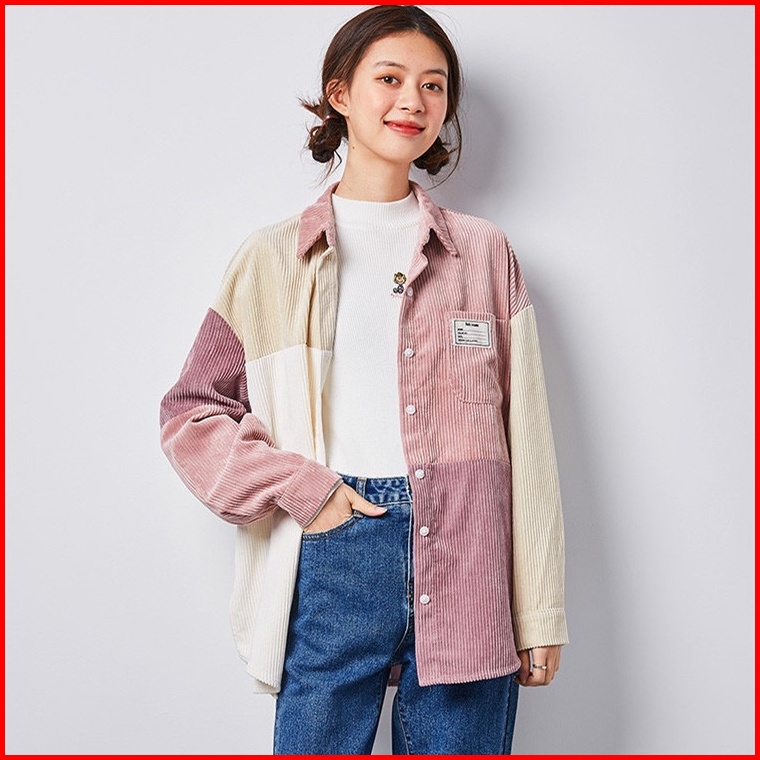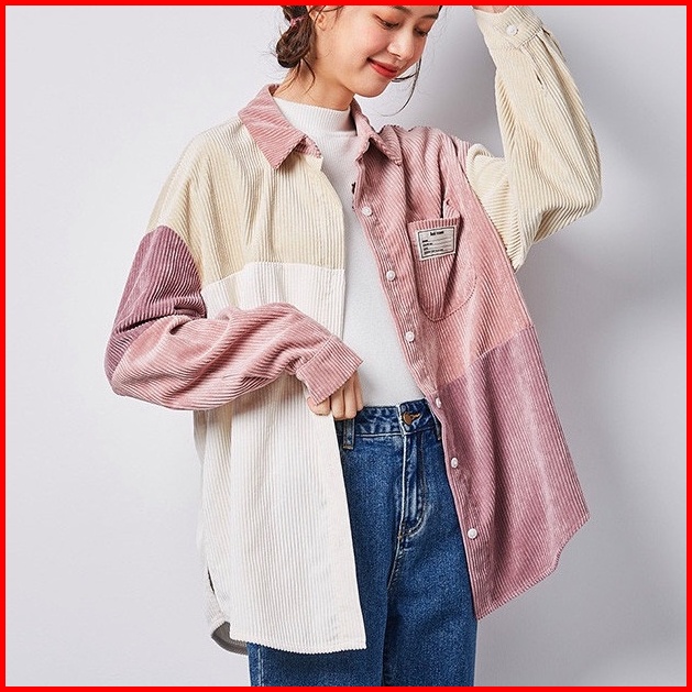 Kemeja Korduroi Gaya Korea Serasi Dengan Warna Blus Lengan Panjang Setengah Panjang