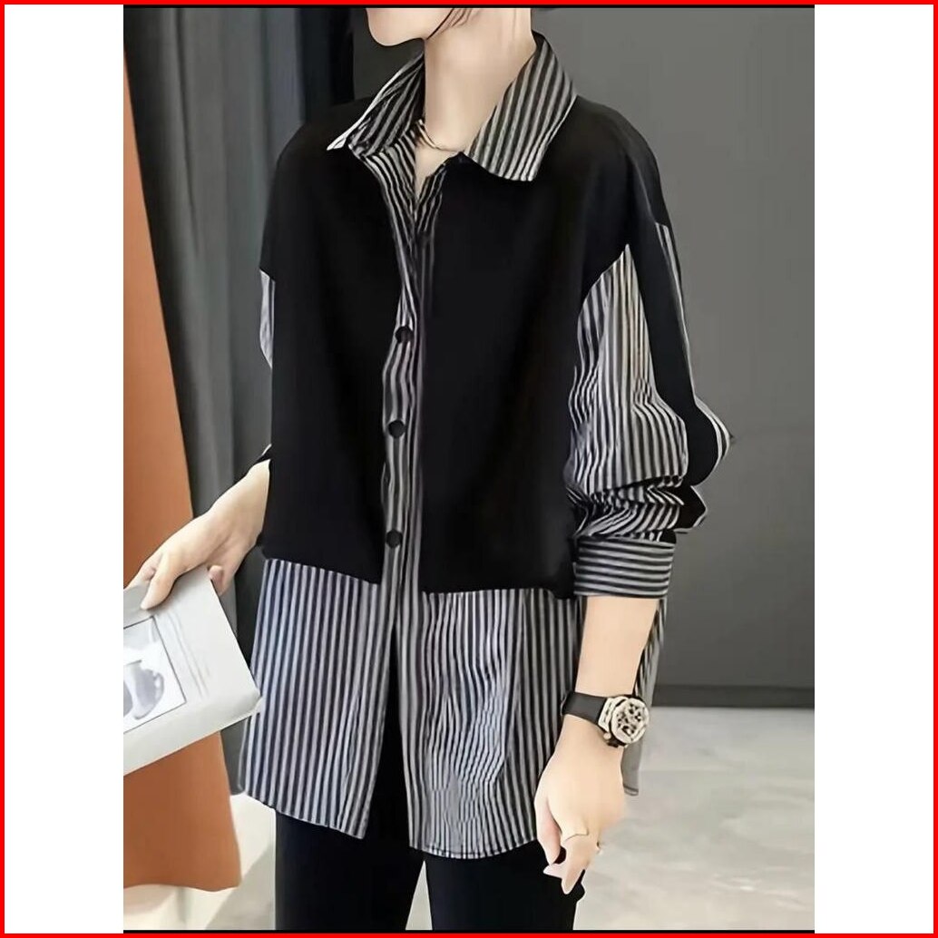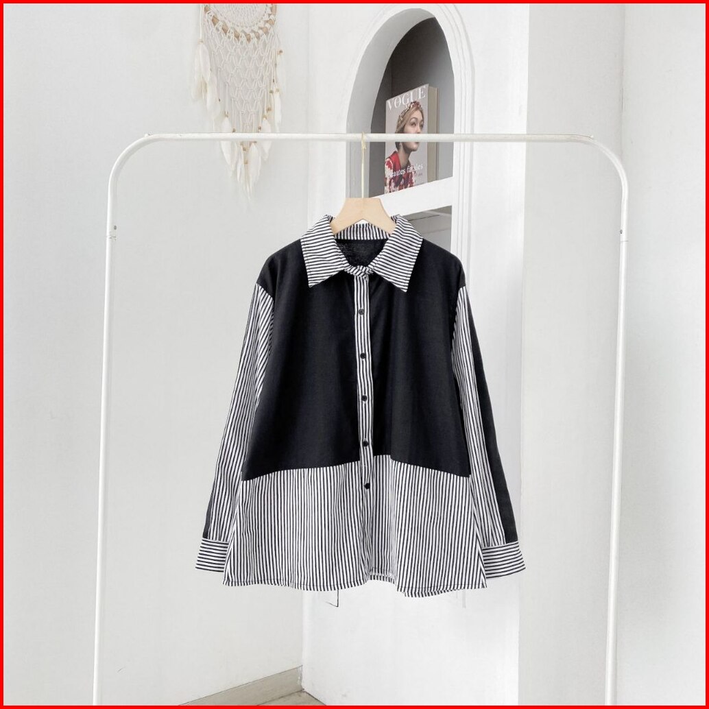 Azka Shirt Oversize Top Atasan Kemeja Wanita Dewasa Fashion Remaja Basic Casual Lengan Panjang Matt Linen Mix Cotton Pre