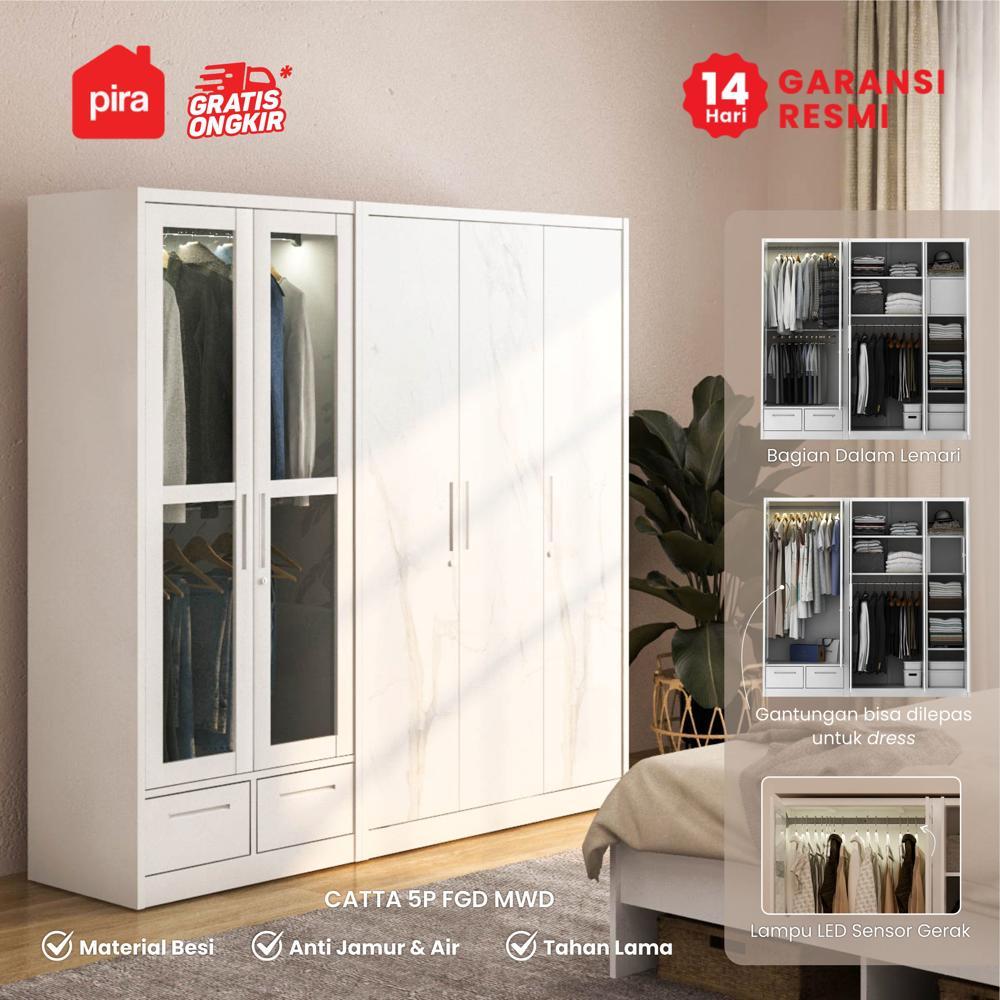 PIRA - CATTA 5P FGD MWD Lemari Pakaian Besi 5 Pintu dengan Laci dan LED