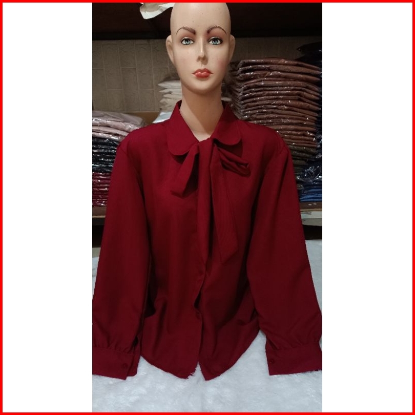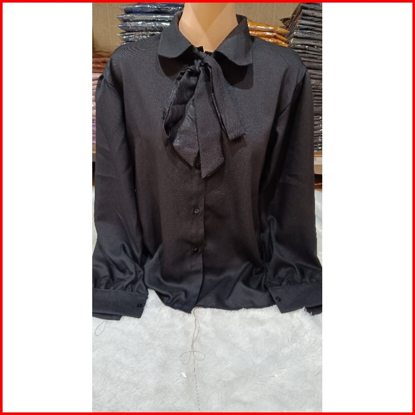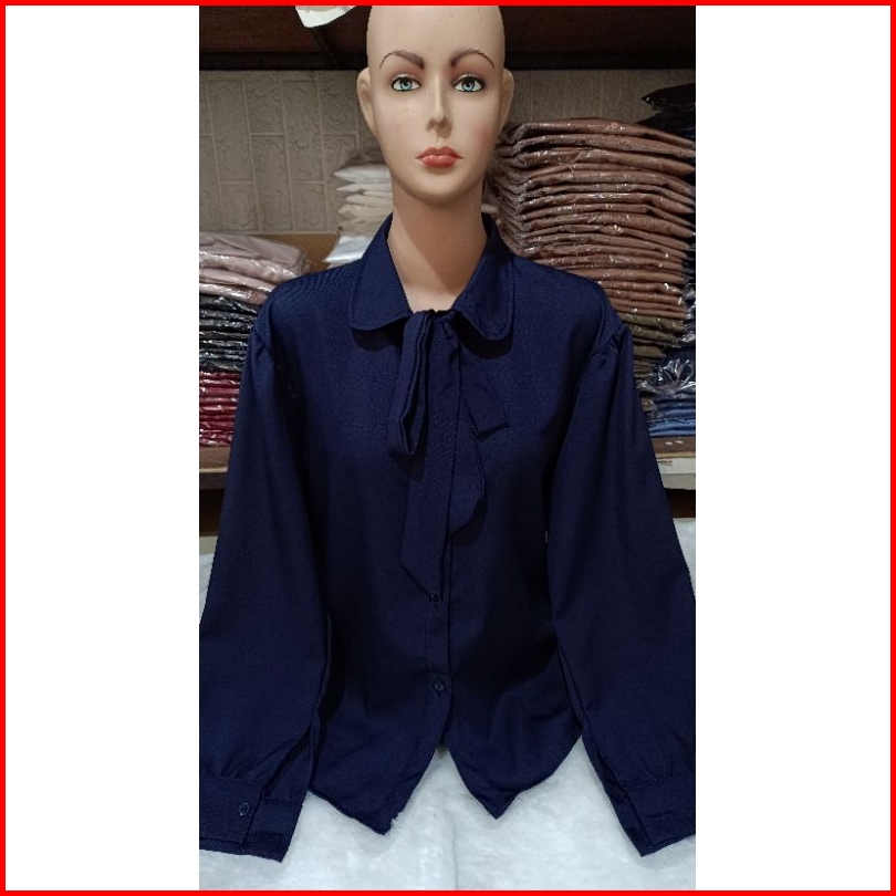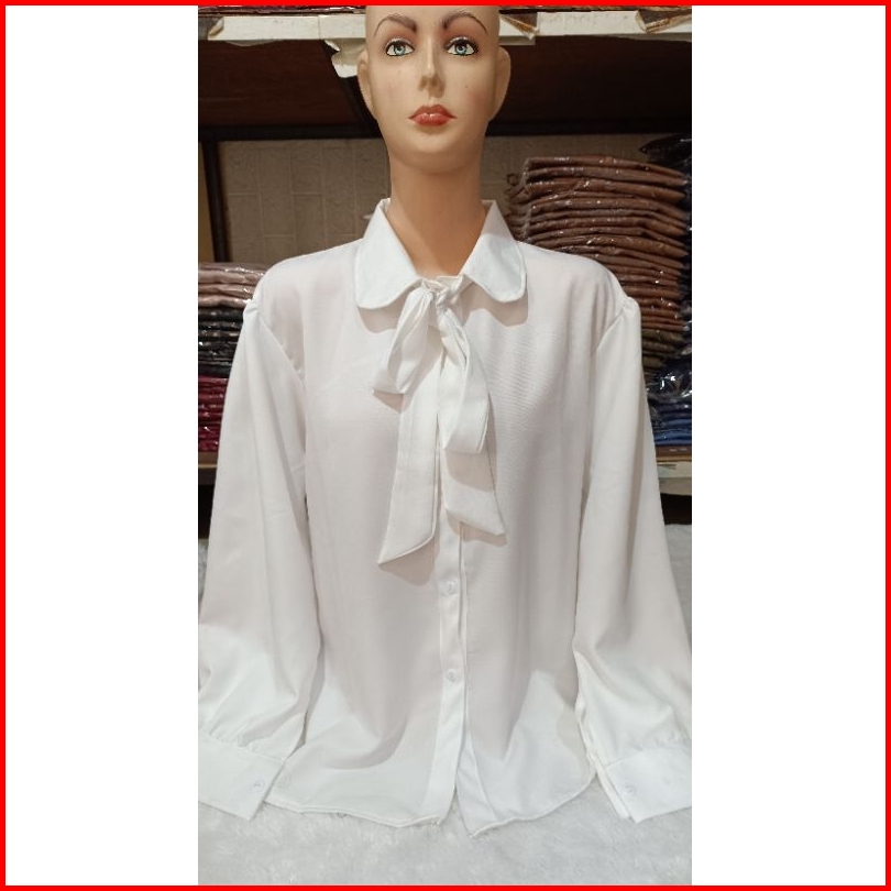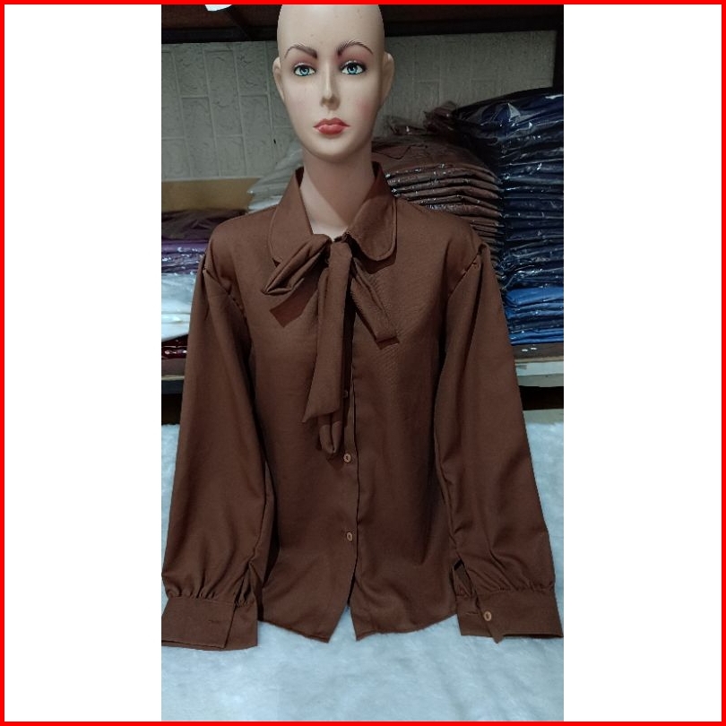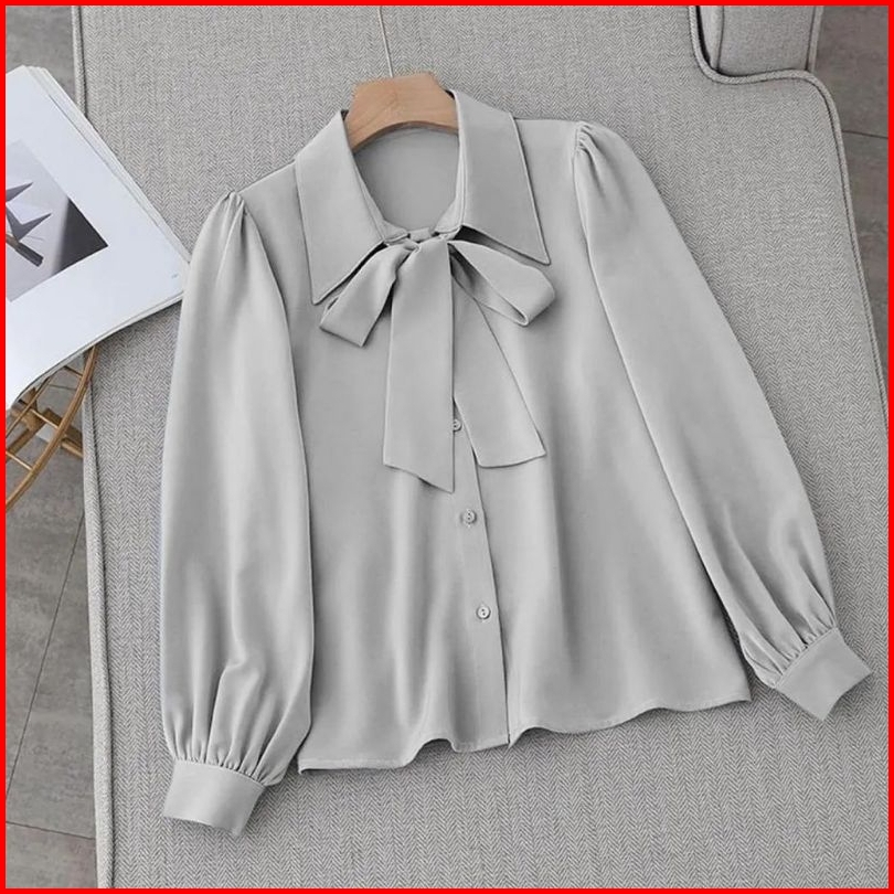 Kemeja Polos Korean Style Shakila Twill Kemeja Dasi Tangan Semi Balon Kemeja Kasual Wanita